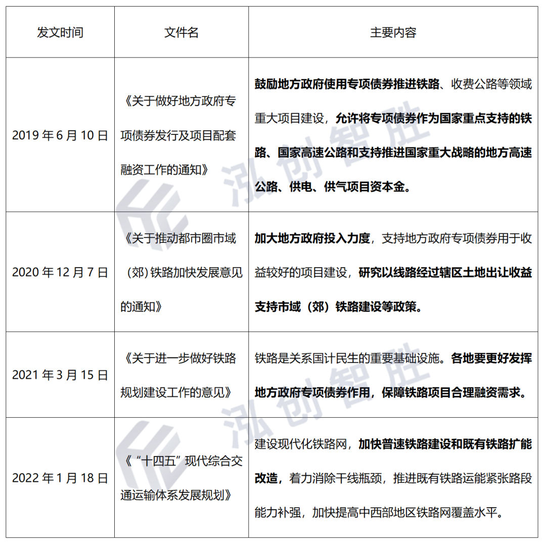 一、地方政府專項債券-鐵路領(lǐng)域相關(guān)文件梳理