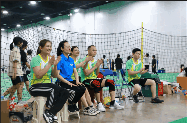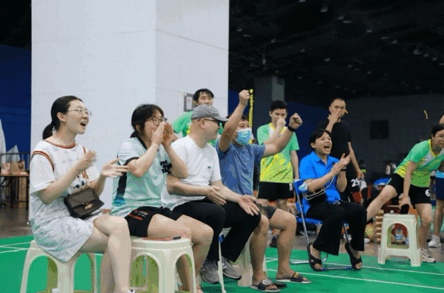 “加油,好球!”現(xiàn)場氛圍熱烈,場下的啦啦隊(duì)們?nèi)橥度氲貫楦髯躁?duì)伍加油助威,每個(gè)人臉上都洋溢著歡快的笑容。