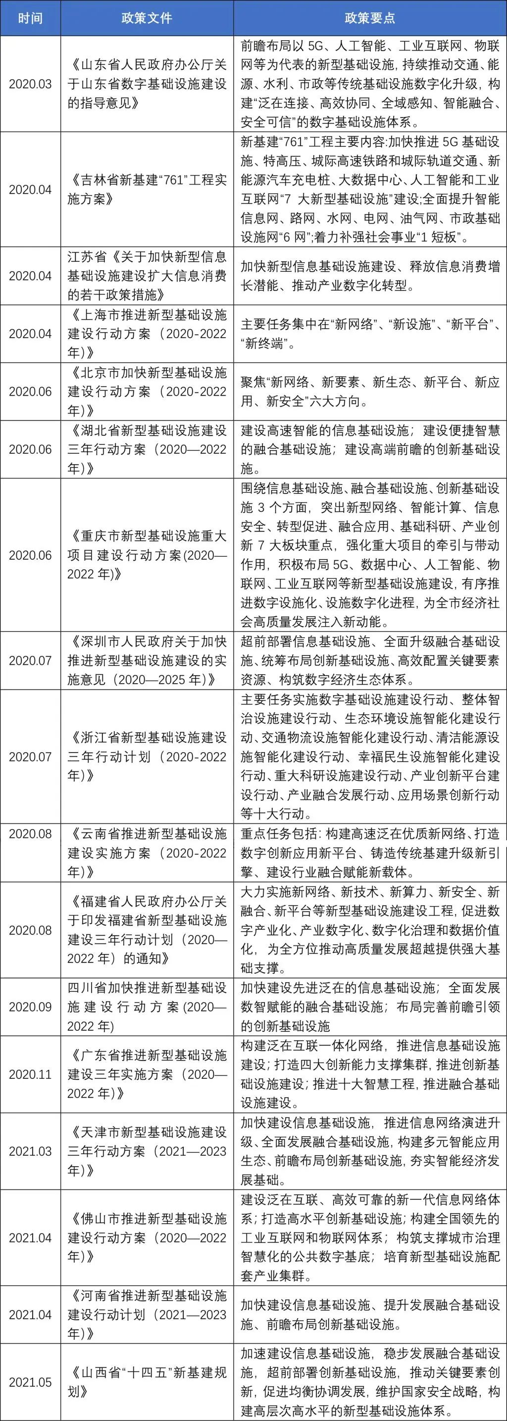3:部分地區(qū)新基建相關(guān)政策整理