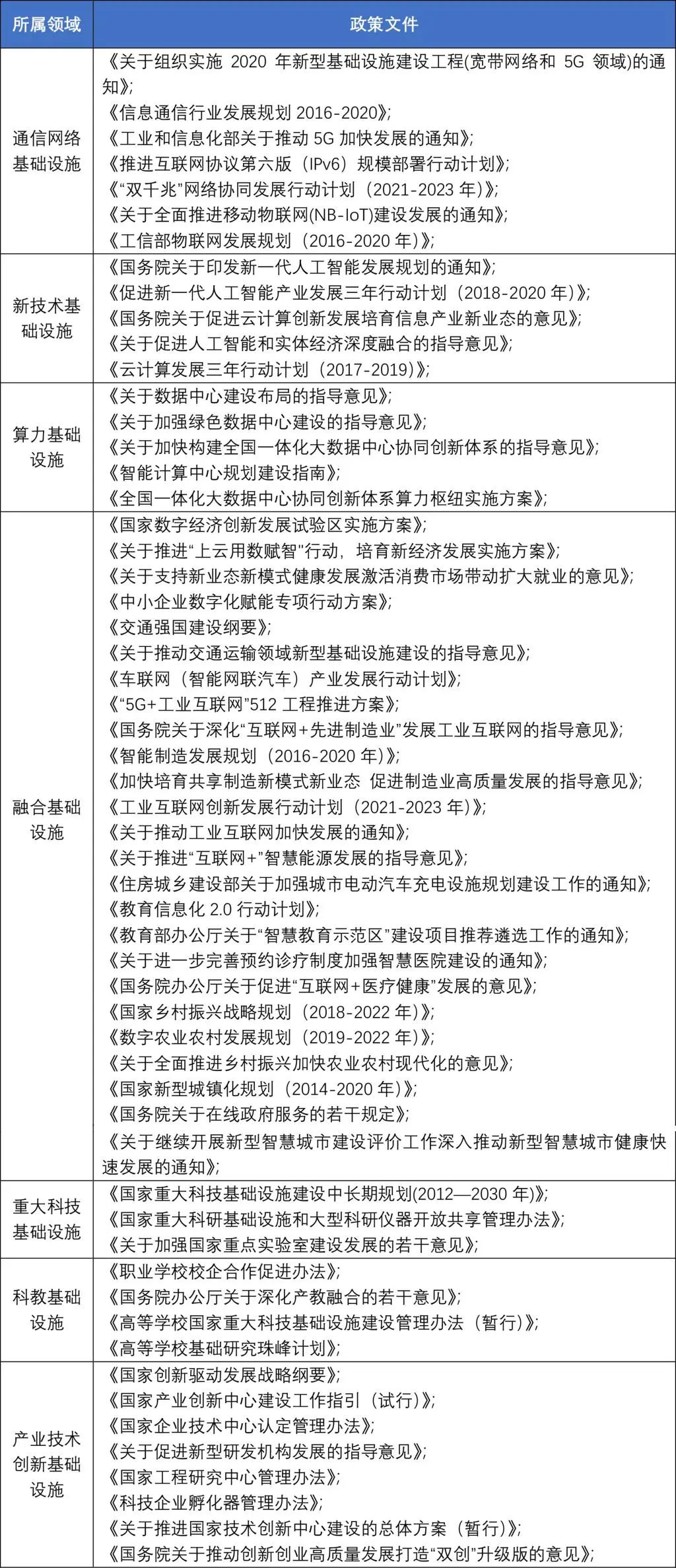 2:新型基礎(chǔ)設(shè)施各領(lǐng)域涉及到的部分政策整理