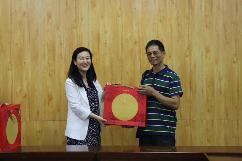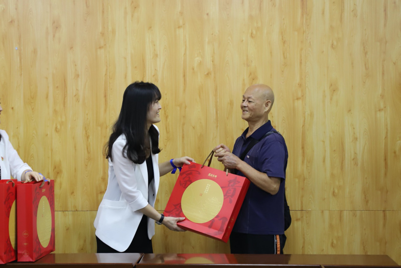 中信恒泰黨支部書記甘江幸、副總經(jīng)理郭佳鑫為老黨員代表送上中秋慰問品