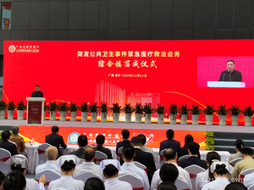 廣西醫(yī)學(xué)科學(xué)院·廣西壯族自治區(qū)人民醫(yī)院黨委書記楊建榮和自治區(qū)衛(wèi)健委二級巡視員吳才林發(fā)表重要講話。落成儀式圓滿完成后,領(lǐng)導(dǎo)嘉賓移步綜合樓實地參觀。