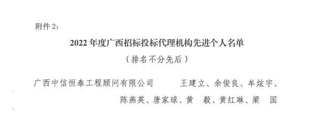 喜訊 | 中信恒泰連續(xù)13年獲評廣西招標(biāo)投標(biāo)行業(yè)先進(jìn)單位