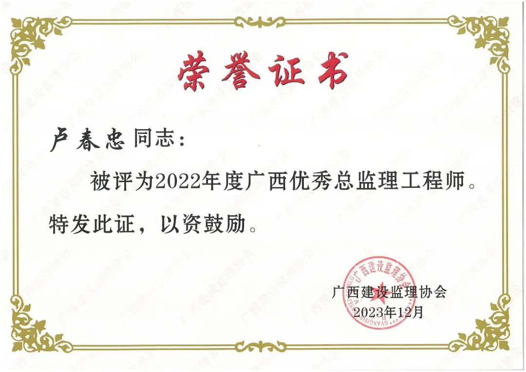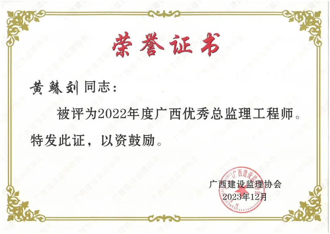 2022年度廣西“優(yōu)秀總監(jiān)理工程師”
