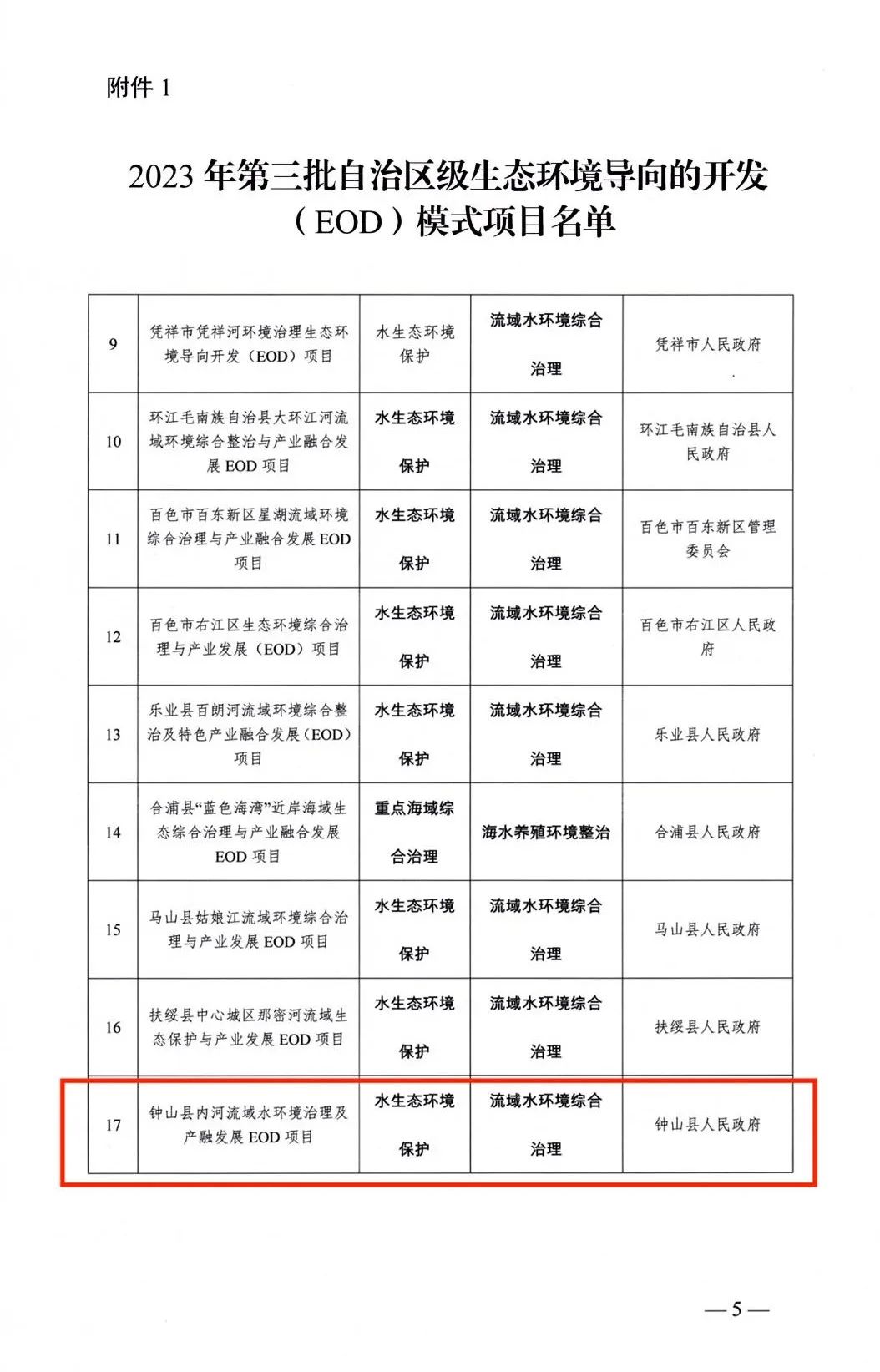 ◎ 中信恒泰助力鐘山縣內(nèi)河流域水環(huán)境治理及產(chǎn)融發(fā)展EOD項目順利入庫