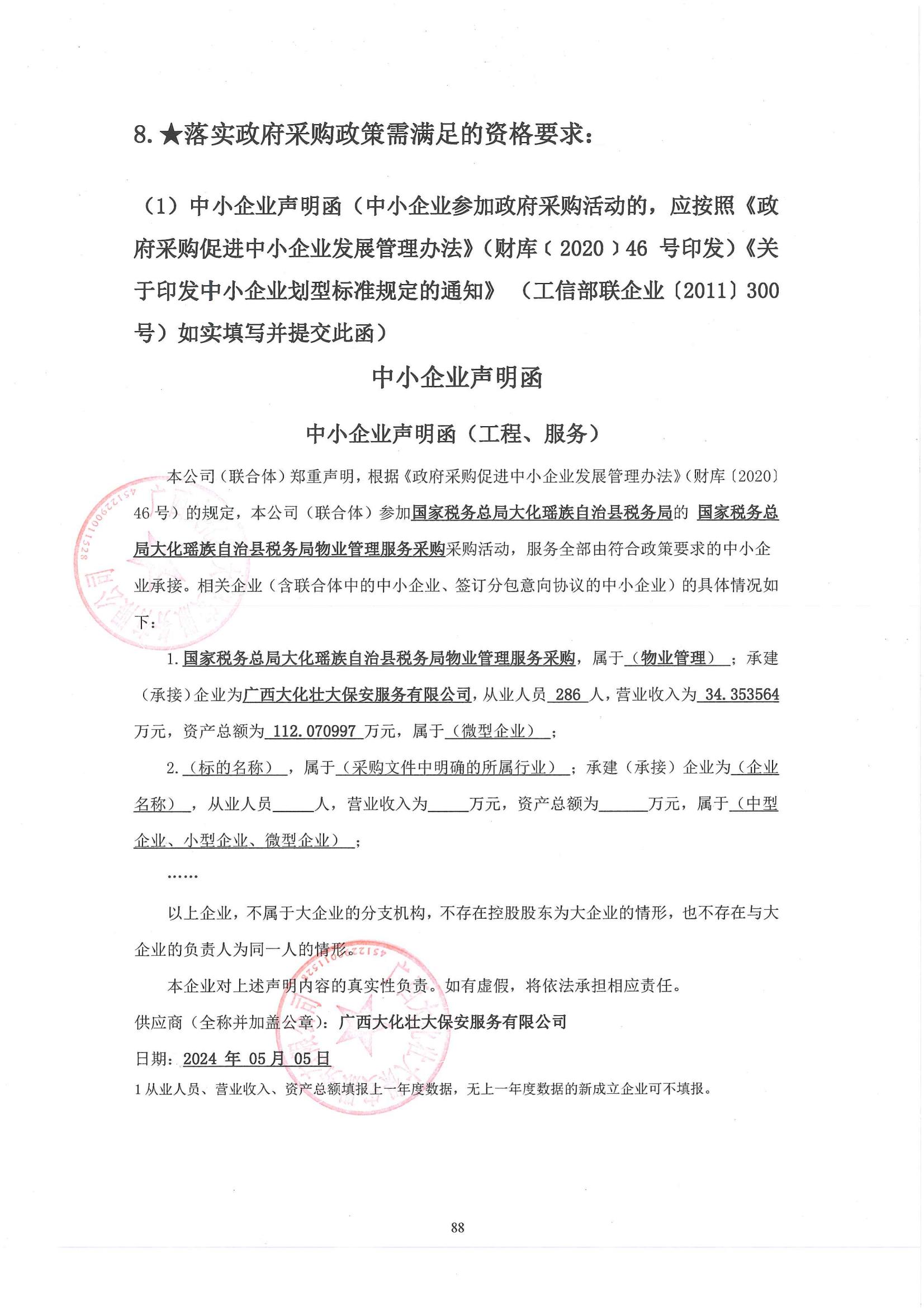 二、項目名稱:國家稅務總局大化瑤族自治縣稅務局物業(yè)管理服務采購