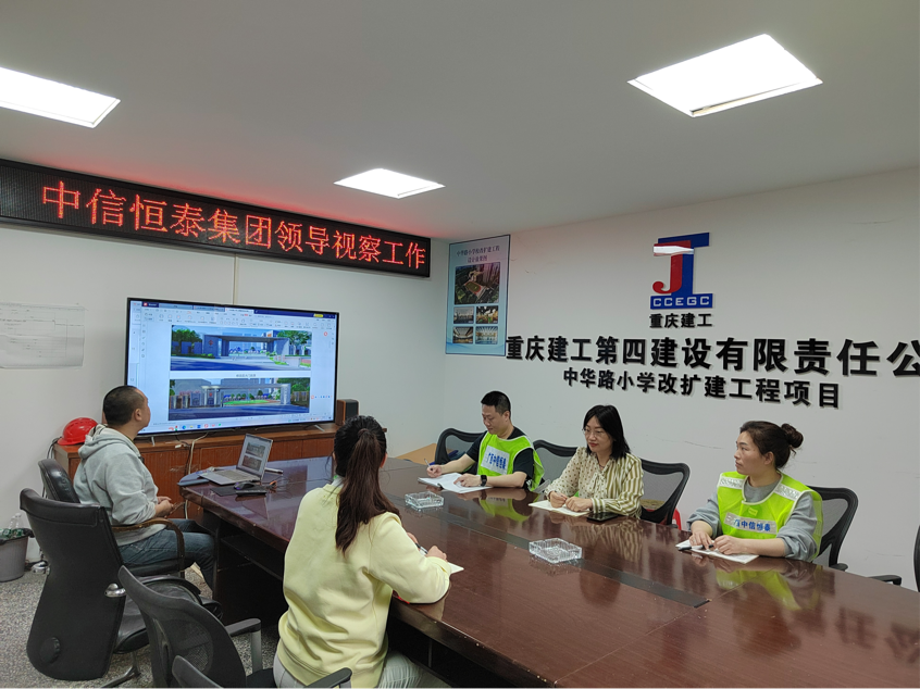 調(diào)研期間,張融一行實地考察了重慶分公司渝中區(qū)中華路小學(xué)改擴建工程項目。在項目現(xiàn)場,張融詳細(xì)聽取了項目團隊關(guān)于工程進度、質(zhì)量管控及安全生產(chǎn)情況的匯報,對團隊在復(fù)雜施工環(huán)境下取得的階段性成果給予充分肯定。對此,項目人員表示,將始終以高度的責(zé)任感和使命感投入建設(shè),以高標(biāo)準(zhǔn)、嚴(yán)要求確保工程順利推進。