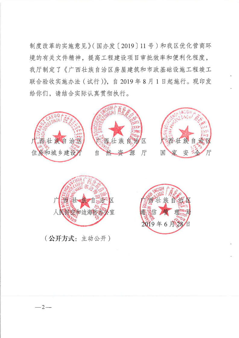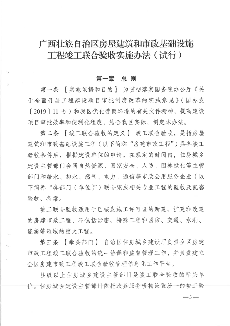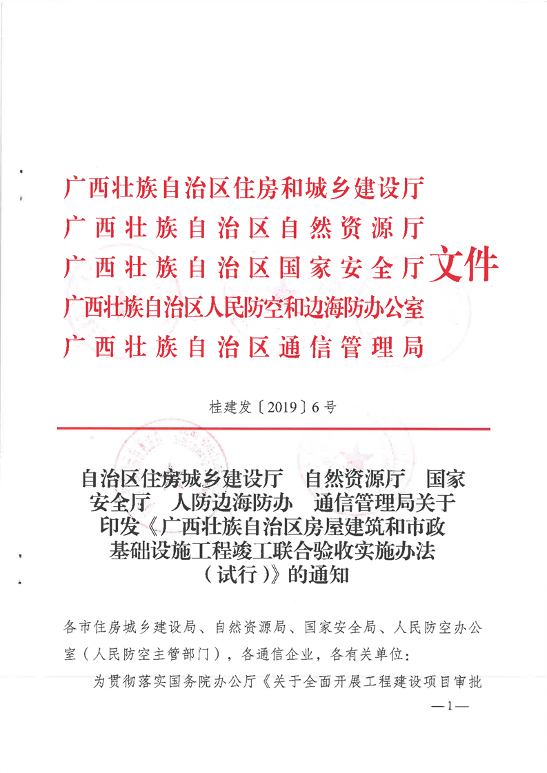 關(guān)于印發(fā)《廣西壯族自治區(qū)房屋建筑和市政基礎(chǔ)設(shè)施工程竣工聯(lián)合驗(yàn)收實(shí)施辦法(試行)》的通知(桂建發(fā)〔2019〕6號(hào)).pdf
