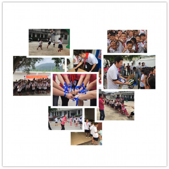 活動現(xiàn)場,首先由上林縣駐村第一書記柏挺,向同學們介紹中信恒泰公司“藍絲帶”小組成員,隨后公司常務副總經(jīng)理周仰東同志向老師和同學們表達節(jié)日的祝福,鼓勵孩子們要好好學習,健康快樂成長,做個有理想、有抱負、有責任感的人。隨后小組成員為孩子們送上書籍、籃球架、羽毛球、足球等愛心物資,岜獨小學樊校長也表達了同學們的感激之情并贈送了錦旗?!八{絲帶”小組成員還和孩子們一起玩游戲,打籃球、羽毛球、跳大繩、拔河……整個校園充滿了歡聲笑語。