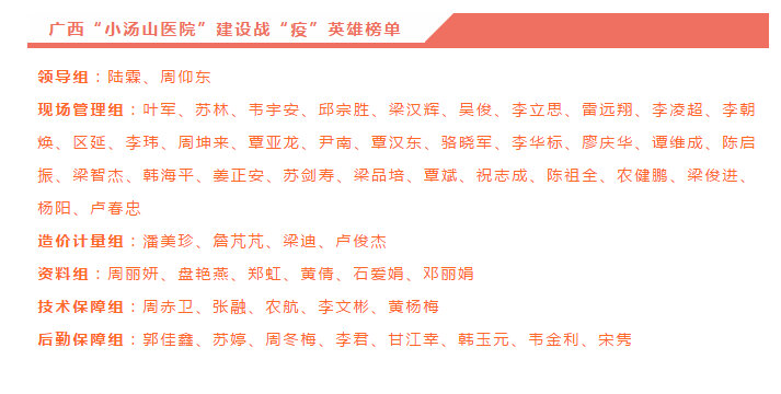項目負責人葉軍帶領現(xiàn)場管理組晝夜交替,輪班值守,風雨無阻堅守崗位,嚴執(zhí)項目總控,緊盯質量安全,對項目建設每個階段的管理重點和關鍵節(jié)點進行嚴格管控,確保高質量、高標準完成建設任務,將這所廣西人民抗擊疫情的“戰(zhàn)斗堡壘”交付人民手中。