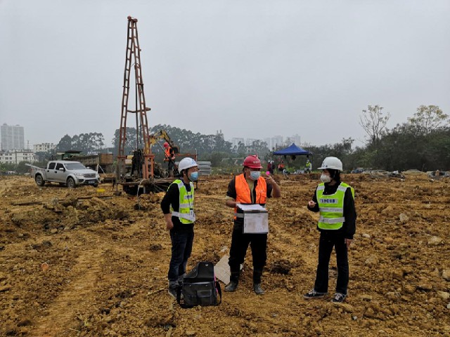 圖為全過程咨詢技術(shù)總監(jiān)農(nóng)航(右一)在項目現(xiàn)場指導工作
