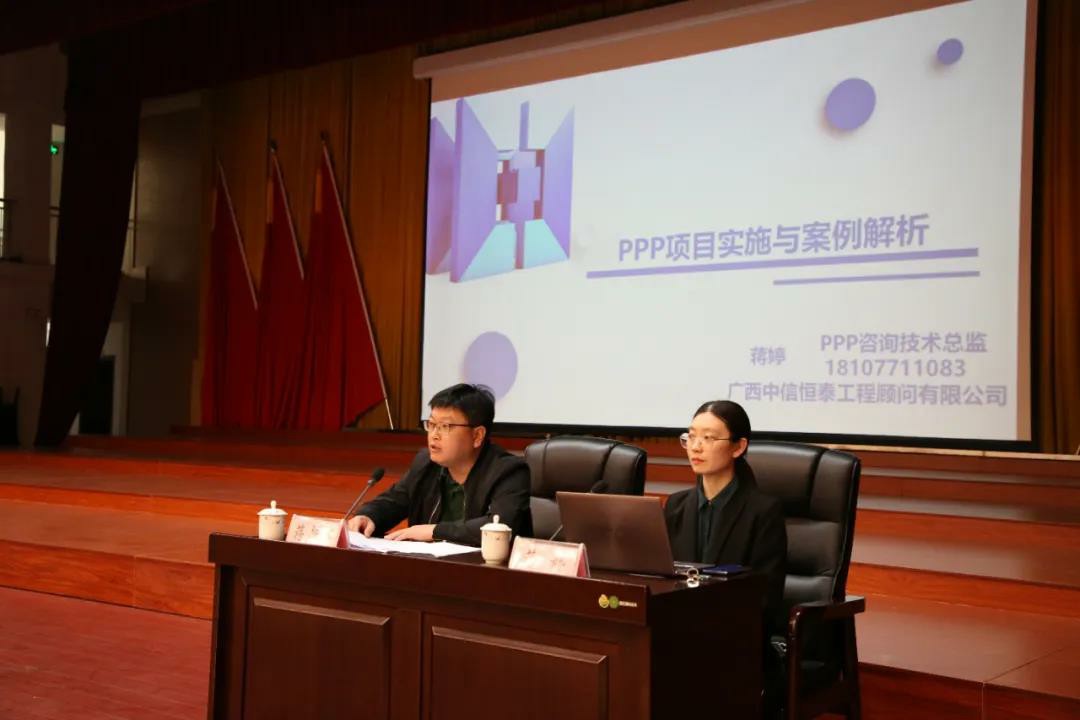 專題講解環(huán)節(jié),廣西中信恒泰公司PPP咨詢中心經(jīng)理陸暉和廣西中信恒泰公司PPP咨詢技術總監(jiān)蔣婷,分別為與會人員帶來投融資模式的基本知識與策劃、PPP的基本知識與策劃、新投融資模式的基本操作流程及相關案例(新投融資相關政策解讀、項目投資實施經(jīng)驗分享)、PPP模式的基本操作流程及相關案例(PPP基本概念詳解、相關政策解讀、PPP項目實施經(jīng)驗分享)等內容。