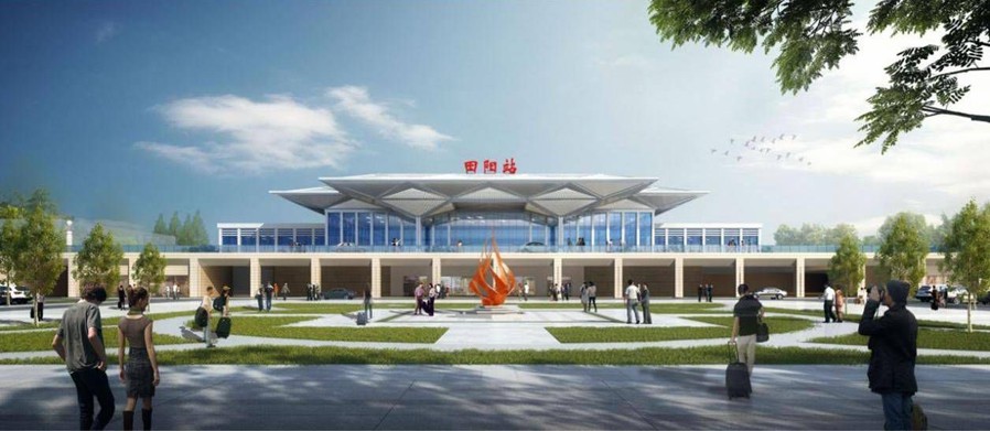 田陽(yáng)火車站站房改造及站前廣場(chǎng)綜合交通樞紐升級(jí)改造工程主要建設(shè)內(nèi)容有:田陽(yáng)站既有站房拆除及過(guò)渡工程、新建站房工程、旅客跨線天橋工程、站臺(tái)雨棚拆除恢復(fù)工程、通信、信息、信號(hào)、電力、接觸網(wǎng)等既有鐵路設(shè)備改建工程、站前廣場(chǎng)的綜合交通樞紐、綠化等相關(guān)附屬設(shè)施工程,總占地面積9萬(wàn)m2,項(xiàng)目總投資約4.8億元。