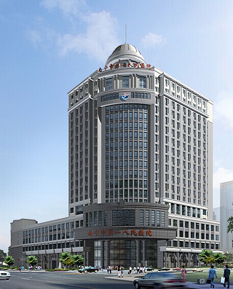 位于南寧市七星路89號,地下一層,半地下一層,主樓二十層,裙房六層,建筑高度82.5米??偨ㄖ娣e49662.7平方米,其中地下總建筑面積10085.7平方米,地上總建筑面積39577平方米。設有國內外先進的智能化管理控制系統(tǒng),物流自動化傳輸系統(tǒng)、空氣凈化設備和一批現(xiàn)代化診療設施,是集醫(yī)療、教學、科研、預防保健、康復于一體的三級甲等綜合醫(yī)院。榮獲南寧市2011年建設工程質量“優(yōu)質結構獎”。