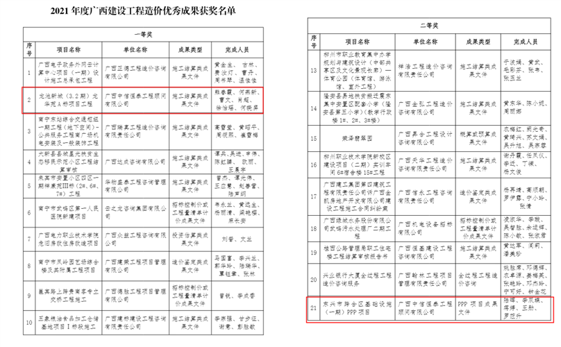 中信恒泰榮獲2021年廣西建設(shè)工程造價(jià)優(yōu)秀成果一、二等獎(jiǎng)