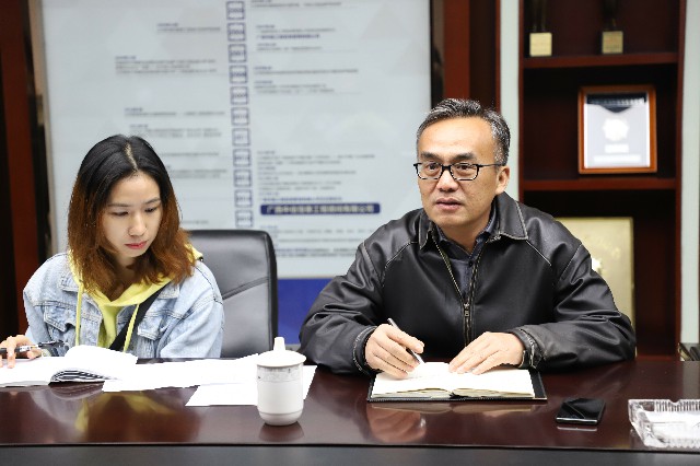 3月9日,南寧市住建局規(guī)劃發(fā)展改革科科長劉星一行就企業(yè)復(fù)工復(fù)產(chǎn)情況、運(yùn)營工作以及企業(yè)發(fā)展遇到的困難與問題到中信恒泰進(jìn)行走訪調(diào)研。中信恒泰董事長陸霖、總經(jīng)理周仰東、副總經(jīng)理唐家球、卓佳、梁漢吉、陸颯、郭佳鑫、技術(shù)安全中心經(jīng)理張融參加會(huì)議。
