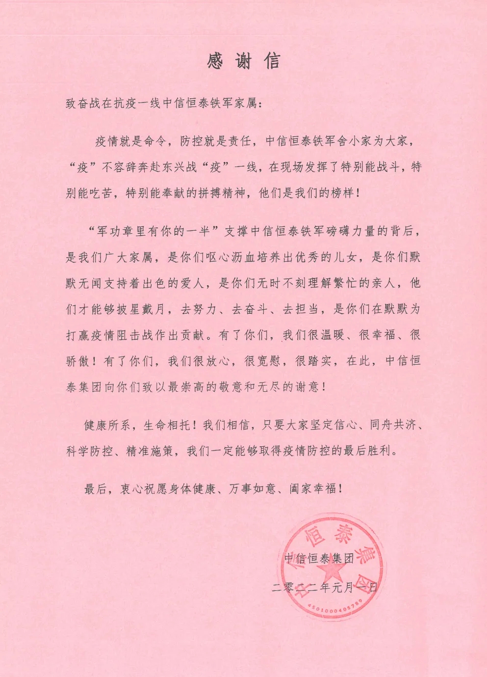 家屬們十分感謝公司給予的關(guān)懷和幫助,紛紛表示疫情當(dāng)前作為抗疫一線人員家屬而感到自豪,他們一定克服困難,照顧好家庭,全力支持工作,和公司一起做抗擊疫情勇敢者最堅(jiān)強(qiáng)的后盾,期待早日戰(zhàn)勝疫情,與前線親人團(tuán)聚!