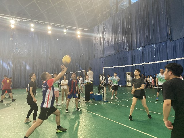 比賽采用男女混合方式進(jìn)行,參賽隊(duì)員3男2女上場(chǎng)。比賽采取三局兩勝制,分兩個(gè)階段進(jìn)行。第一階段采用分組單循環(huán)賽,小組賽積分前二名的隊(duì)伍進(jìn)入第二階段,第二階段再進(jìn)行交叉賽,直至決出名次。隨著裁判員的一聲哨響,各參賽隊(duì)伍迅速投入到比賽當(dāng)中,比賽氣氛異?;钴S。賽場(chǎng)上,對(duì)戰(zhàn)的雙方隊(duì)員都鉚足勁頭,各施絕技,發(fā)球、起跳、攔網(wǎng)、扣球,隊(duì)員們既展現(xiàn)出個(gè)人精湛的球技,又有熟練默契的戰(zhàn)術(shù)配合。每一局比賽過(guò)程中,隊(duì)員相互打氣加油,分析戰(zhàn)術(shù),總結(jié)經(jīng)驗(yàn),蓄勢(shì)待發(fā)。賽場(chǎng)上充滿了友好、激烈的氛圍,吶喊聲、助威聲、喝彩聲響徹了整個(gè)球館。全體裁判員和工作人員恪盡職守,公平公正;運(yùn)動(dòng)們以球會(huì)友,賽出風(fēng)格,賽出水平,展現(xiàn)出中信恒泰人敢于拼搏、勇于進(jìn)取的良好精神面貌和道德風(fēng)尚。