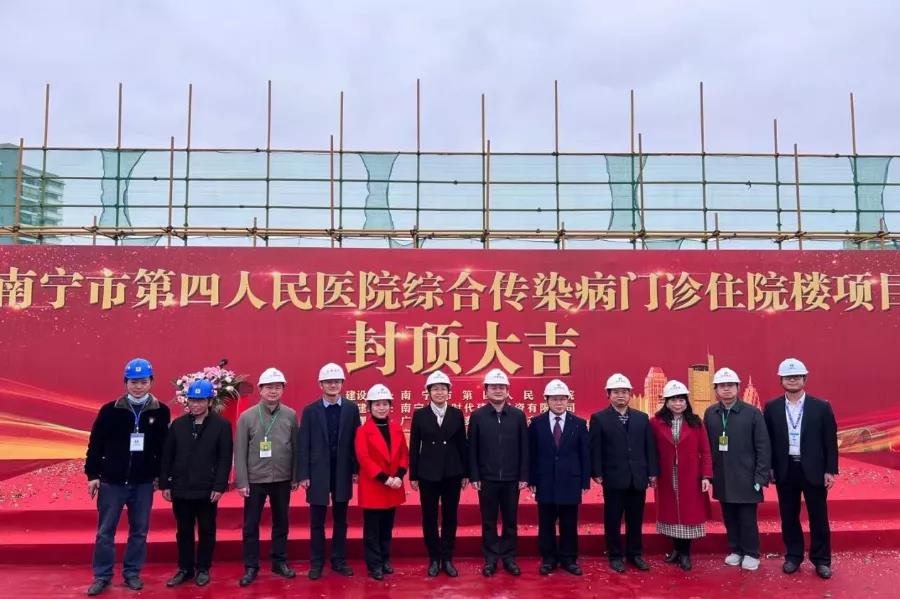 1/21 南寧市第四人民醫(yī)院綜合傳染病門(mén)診住院樓項(xiàng)目順利封頂