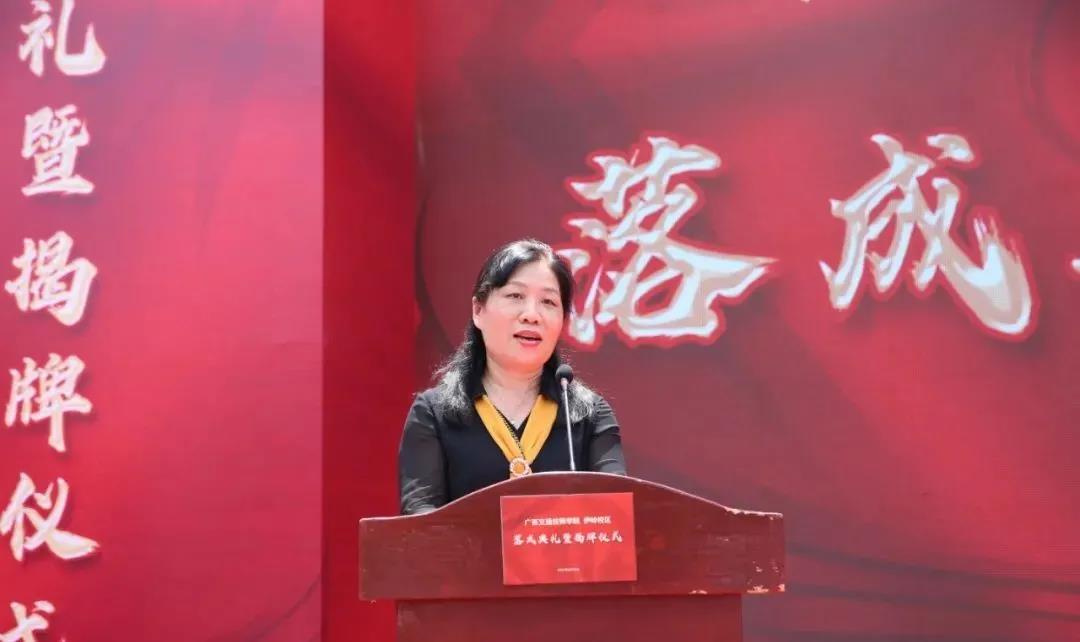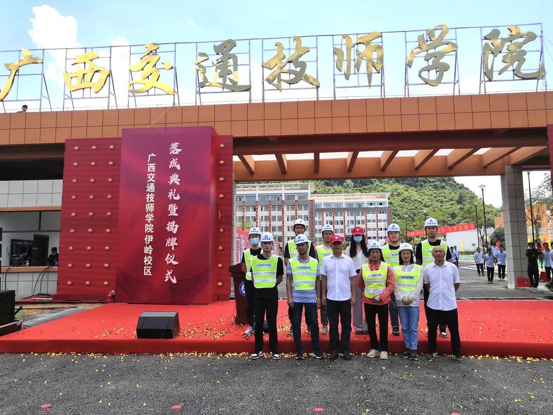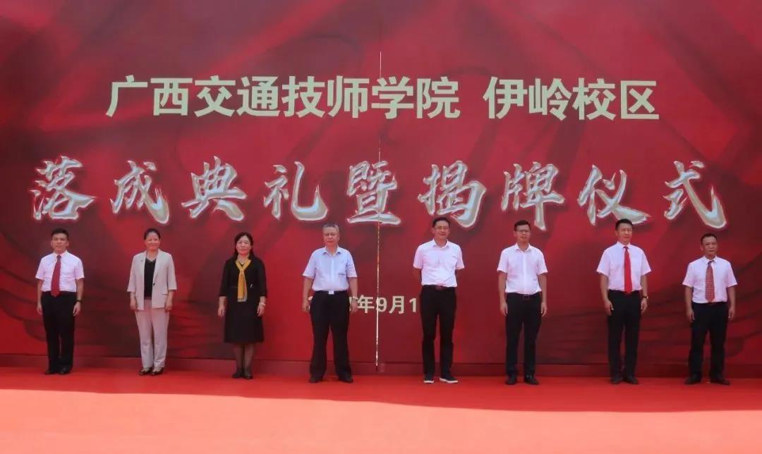 陳鴻起、胡華平、楊春華、尹玉林及學(xué)院領(lǐng)導(dǎo)為廣西交通技師學(xué)院伊嶺校區(qū)落成典禮揭幕