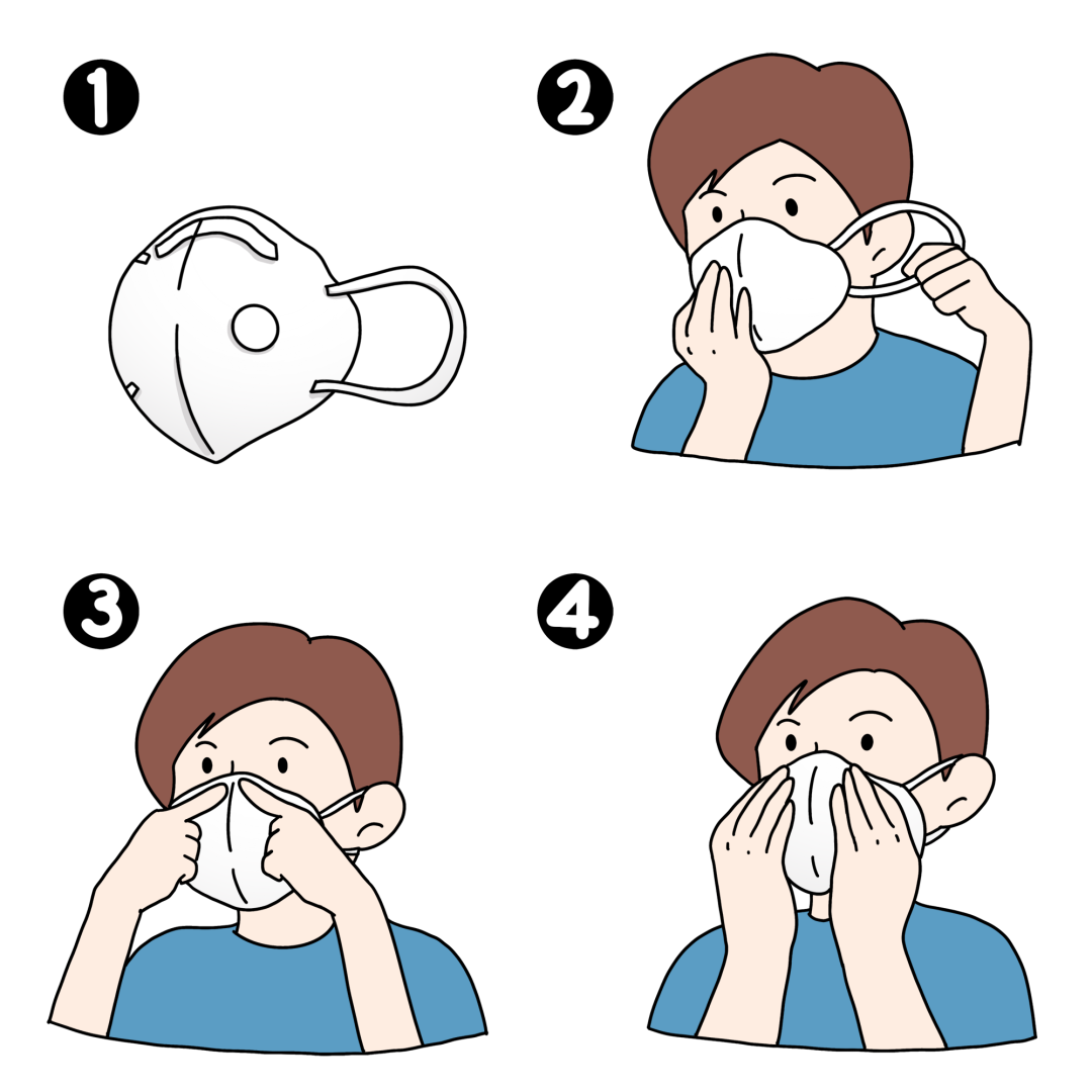 佩戴時,要將折面完全展開,將嘴、鼻、下頜完全包住,然后壓緊鼻夾,使口罩與面部完全貼合。