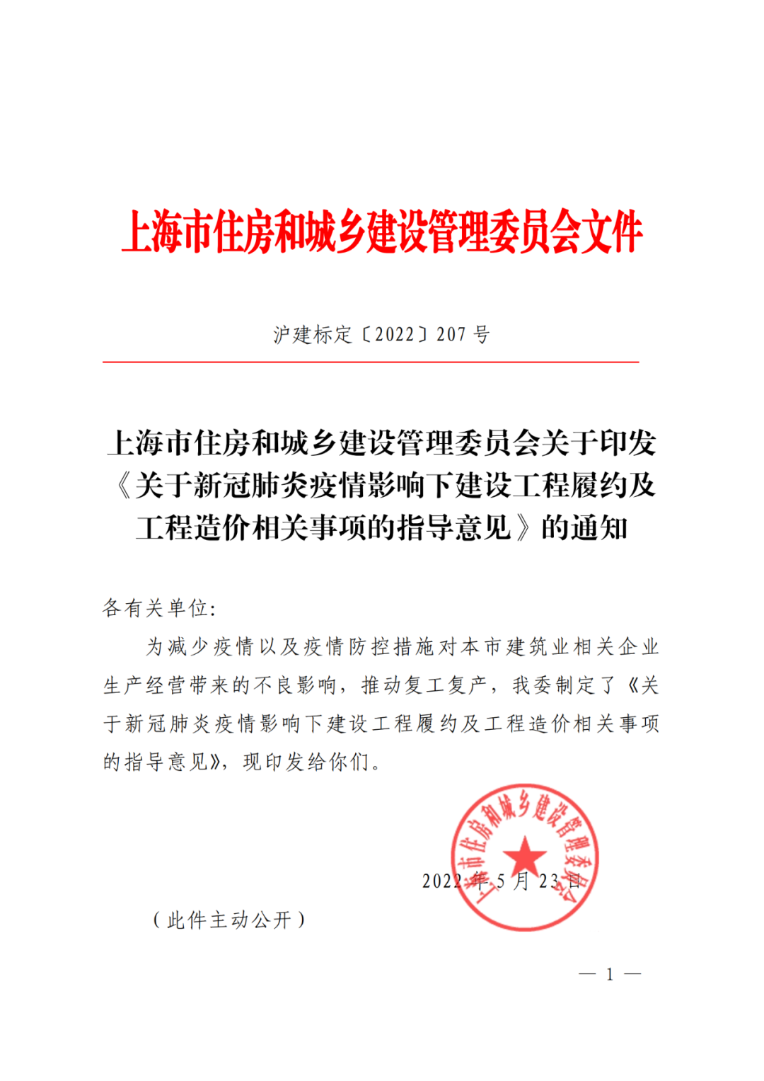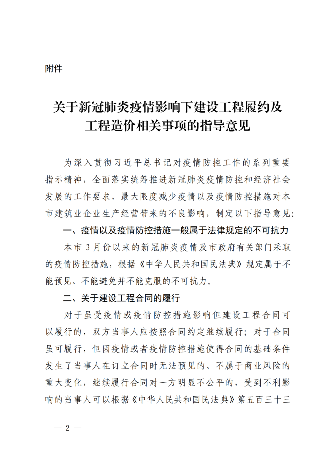 上海市住房和城鄉(xiāng)建設(shè)管理委員會(huì)關(guān)于印發(fā) 《關(guān)于新冠肺炎疫情影響下建設(shè)工程履約及工程造價(jià)相關(guān)事項(xiàng)的指導(dǎo)意見》的通知