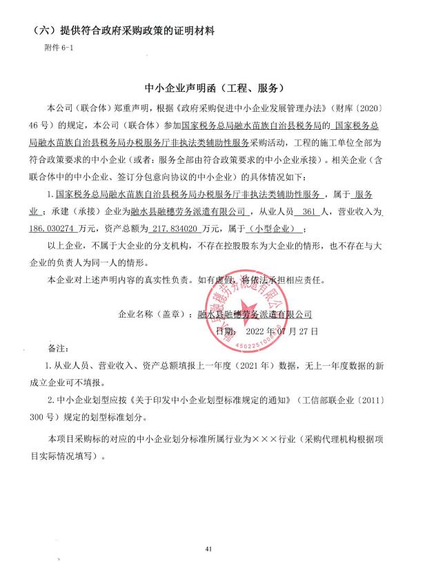 二、項目名稱:國家稅務總局融水苗族自治縣稅務局辦稅服務廳非執(zhí)法類輔助性服務
