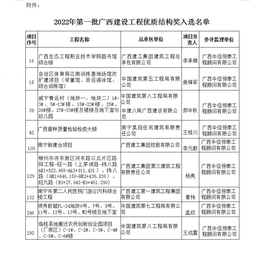 喜訊 | 中信恒泰多個(gè)項(xiàng)目榮獲2022年第一批廣西壯族自治區(qū)建設(shè)工程優(yōu)質(zhì)結(jié)構(gòu)獎(jiǎng)