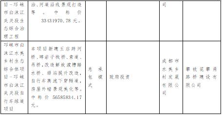 1、施工總承包模式上述10例樣本中,有3例采用施工總承包模式。其中2例項目中標價不足億元,規(guī)模較小,另1例項目系巴中革命老區(qū)振興發(fā)展及巴河治理 EOD 項目中單獨劃出的B包,對比投資額,該項目B包(投資額7億元)僅為A包(投資額56億元)的1/8。從樣本可知,施工總承包模式適用于一部分投資額較小的項目。