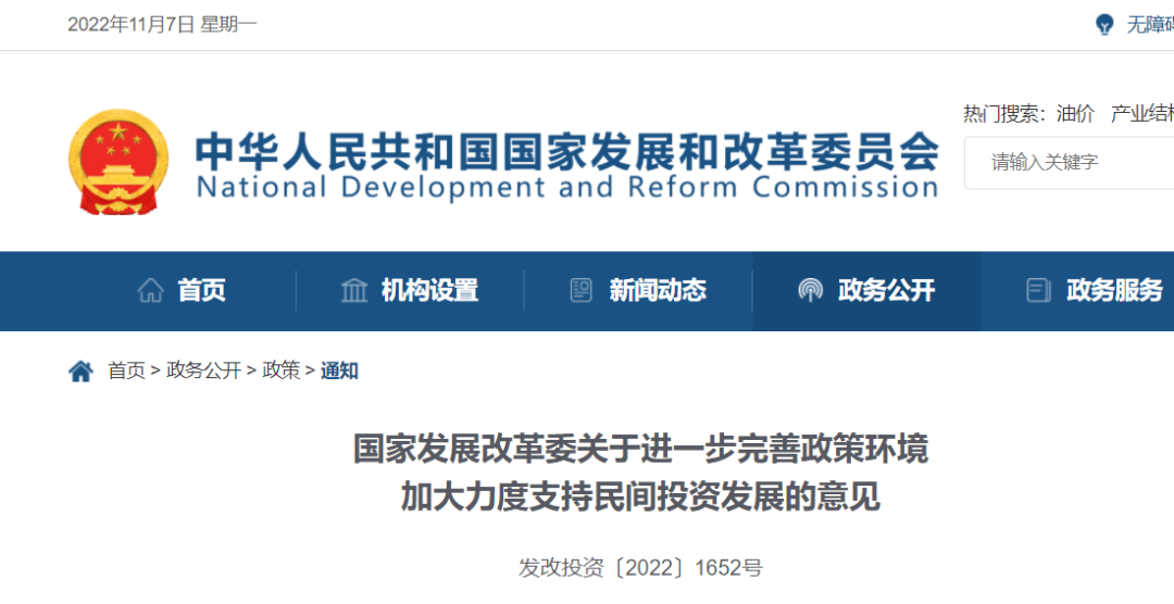 剛剛,發(fā)改委發(fā)布《關(guān)于進(jìn)一步完善政策環(huán)境加大力度支持民間投資發(fā)展的意見(jiàn)》(發(fā)改投資〔2022〕1652號(hào)