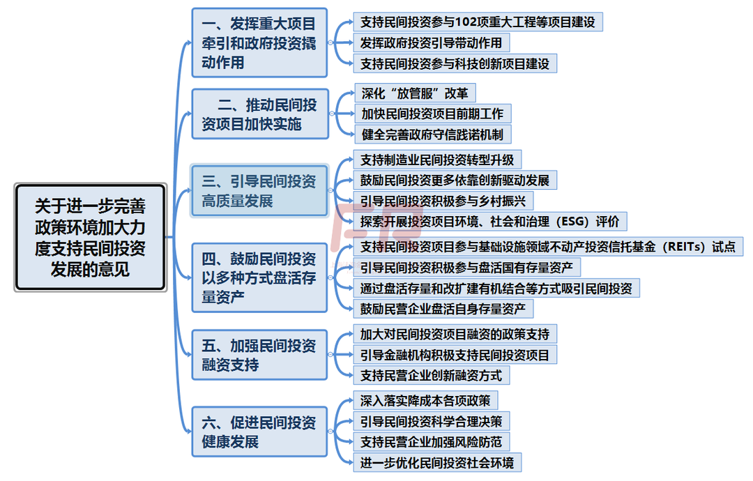 文件旨在進(jìn)一步完善政策環(huán)境、加大力度支持民間投資發(fā)展。共提出六大方面21條意見(jiàn)。亮點(diǎn)包括: