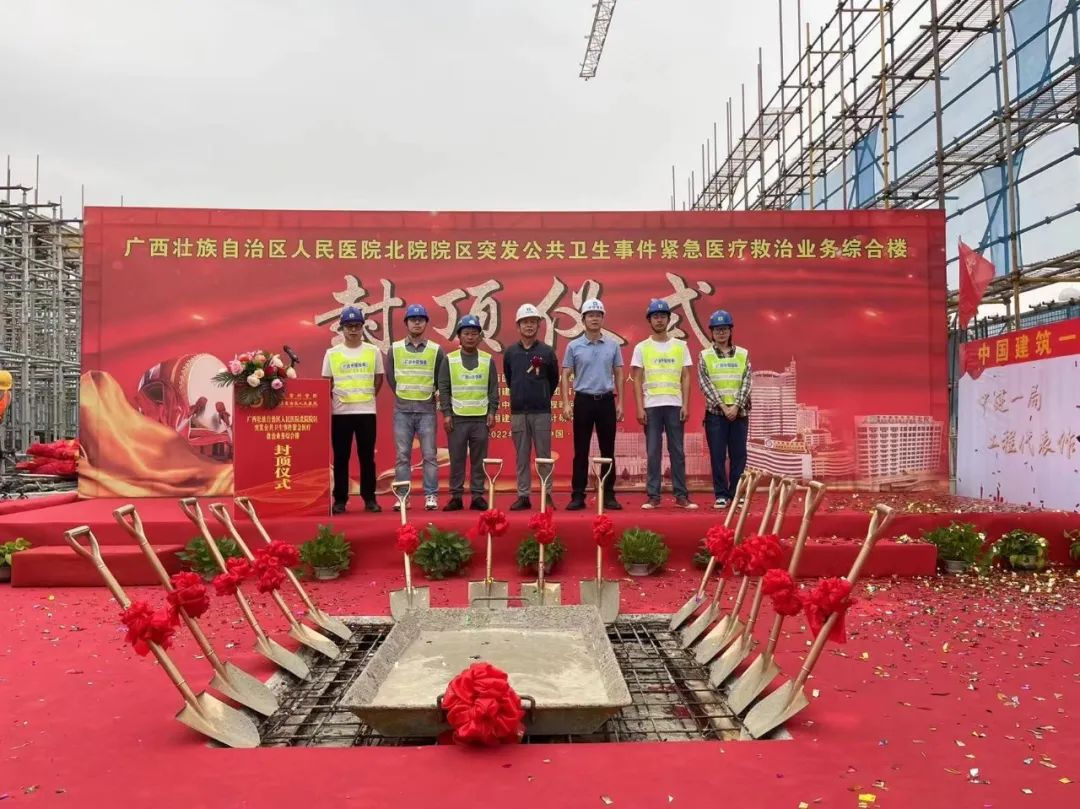 2022年11月22日上午,由中信恒泰擔(dān)任全咨單位的自治區(qū)人民醫(yī)院北院院區(qū)突發(fā)公共衛(wèi)生事件緊急醫(yī)療救治業(yè)務(wù)綜合樓項(xiàng)目封頂儀式隆重舉行。自治區(qū)人民醫(yī)院黨委書記楊建榮,自治區(qū)人民醫(yī)院黨委副書記、院長黎君君,中信恒泰集團(tuán)董事長陸霖、總經(jīng)理周仰東,中建一局廣西分公司履約副總滕孝鑫,醫(yī)院黨政領(lǐng)導(dǎo)班子,各參建單位代表共同出席本次封頂儀式。