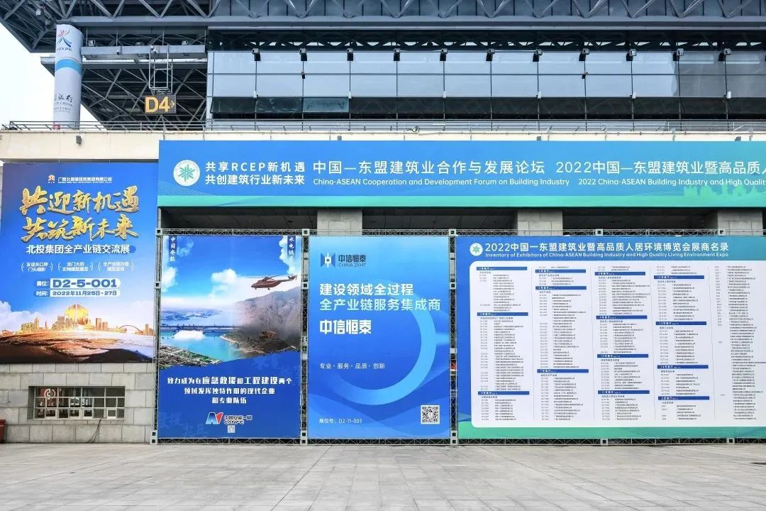 11月25日-27日,以“共享RCEP新機遇 共創(chuàng)建筑行業(yè)新未來”為主題的中國—東盟建筑業(yè)合作與發(fā)展論壇、2022中國—東盟建筑業(yè)暨高品質(zhì)人居環(huán)境博覽會在南寧舉行,廣西中信恒泰工程顧問有限公司攜多項創(chuàng)新成果精彩亮相。