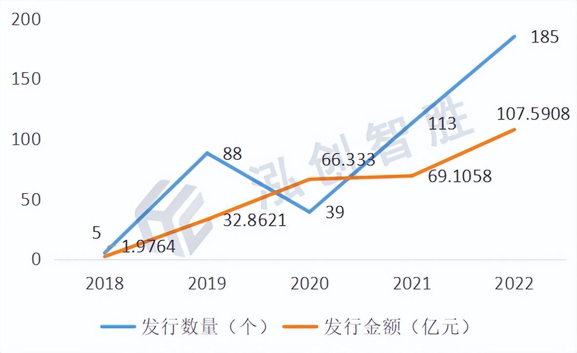 2018年,我國開始在安徽、河北、江蘇陸續(xù)推出高標(biāo)準(zhǔn)農(nóng)田項目專項債券,自2019年起,高標(biāo)準(zhǔn)農(nóng)田專項債券的發(fā)行數(shù)量及發(fā)行額整體上升。截至2022年,高標(biāo)準(zhǔn)農(nóng)田專項債券共發(fā)行429個項目,發(fā)行金額共計277.2681億元,具體情況如下:
