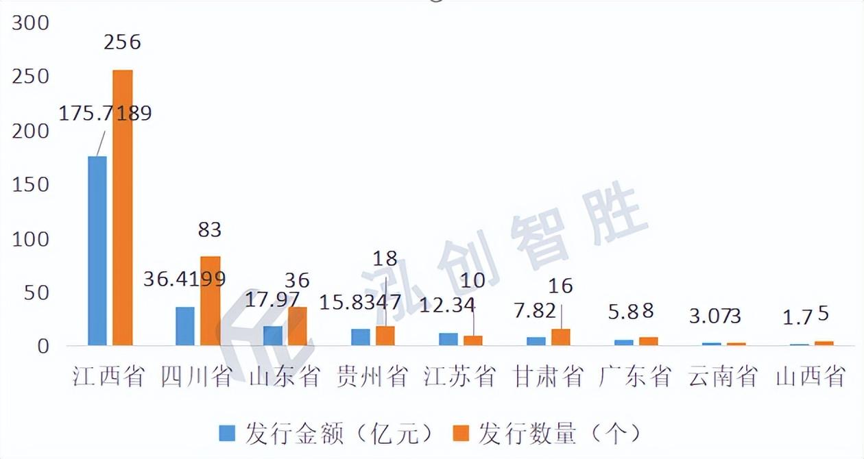 自2019年起,全國發(fā)行高標(biāo)準(zhǔn)農(nóng)田專項債券的發(fā)行額大幅提升,特別是江西省、四川省、山東省,發(fā)行數(shù)量和發(fā)行金額都占據(jù)了全國大部分規(guī)模,具體發(fā)行排名靠前情況如下所示: