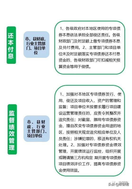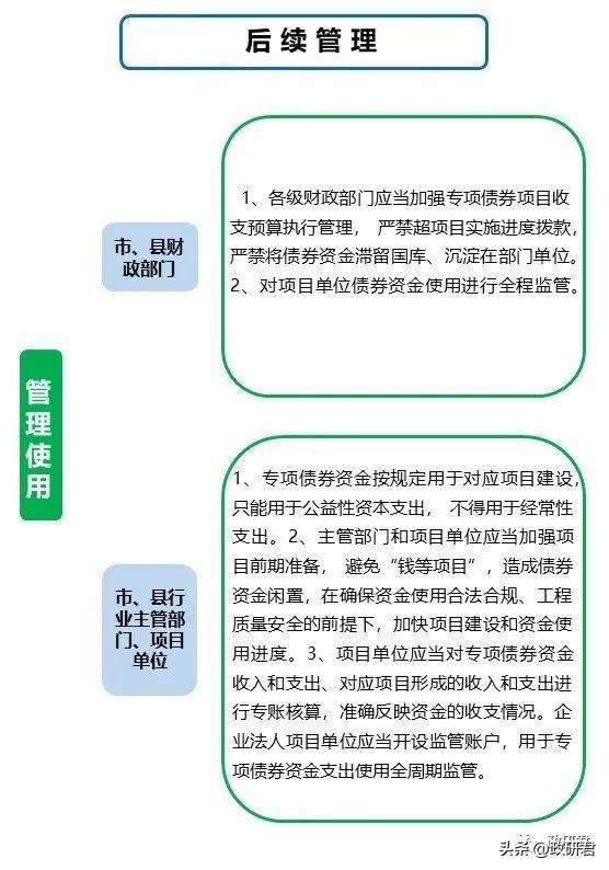 由各級省財政部門按發(fā)行計劃,請債券發(fā)行機構(gòu),安排發(fā)行專項債,專項債發(fā)行后,各級財政部門應(yīng)按要求主動披露項目專項債券相關(guān)信息,包括發(fā)行信息、發(fā)行結(jié)果、付息信息、兌付信息、定期信息、重大事項信息等。