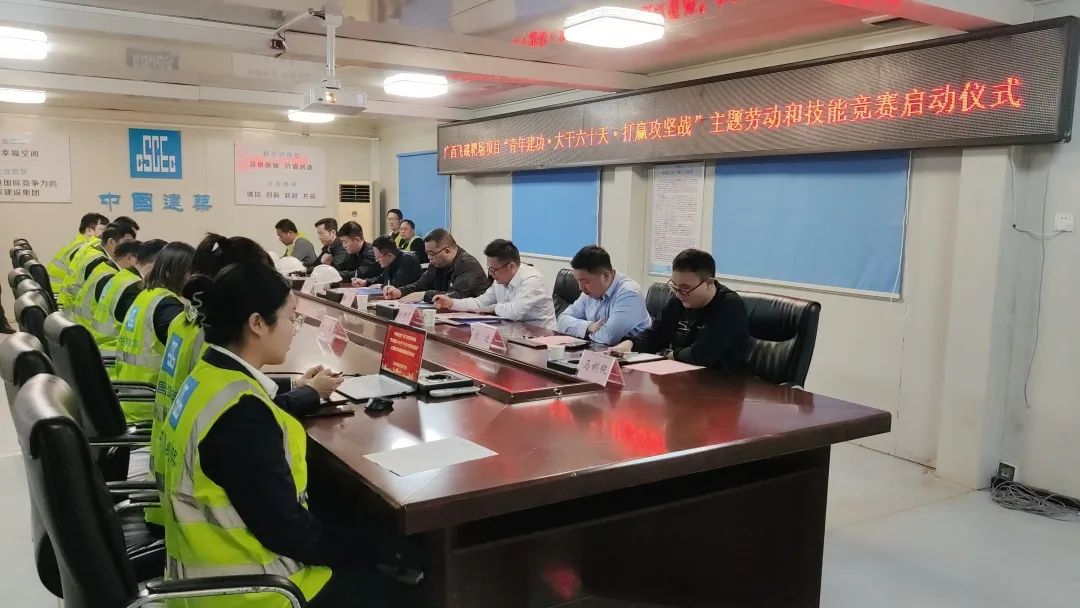 為高效推進(jìn)項目建設(shè),提升職工技能素質(zhì),推動項目技術(shù)創(chuàng)新,2月27日下午,廣西飛碟靶場項目開展“青年建功·大干六十天·打贏攻堅戰(zhàn)”主題勞動和技能競賽啟動儀式。南寧縱橫時代建設(shè)投資有限公司總經(jīng)理戚浩,廣西中信恒泰工程顧問有限公司總經(jīng)理周仰東,中建五局土木工程有限公司黨委副書記、工會主席王昆,中建五局廣西建設(shè)有限公司黨委副書記、紀(jì)委書記、工會主席劉世華出席本次啟動儀式。