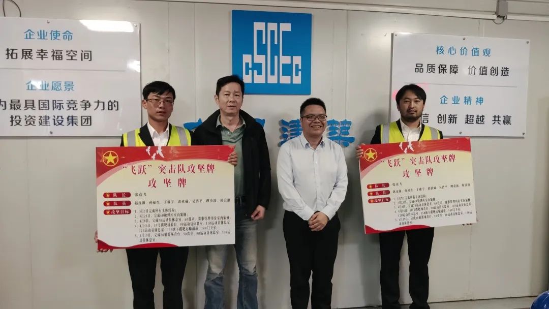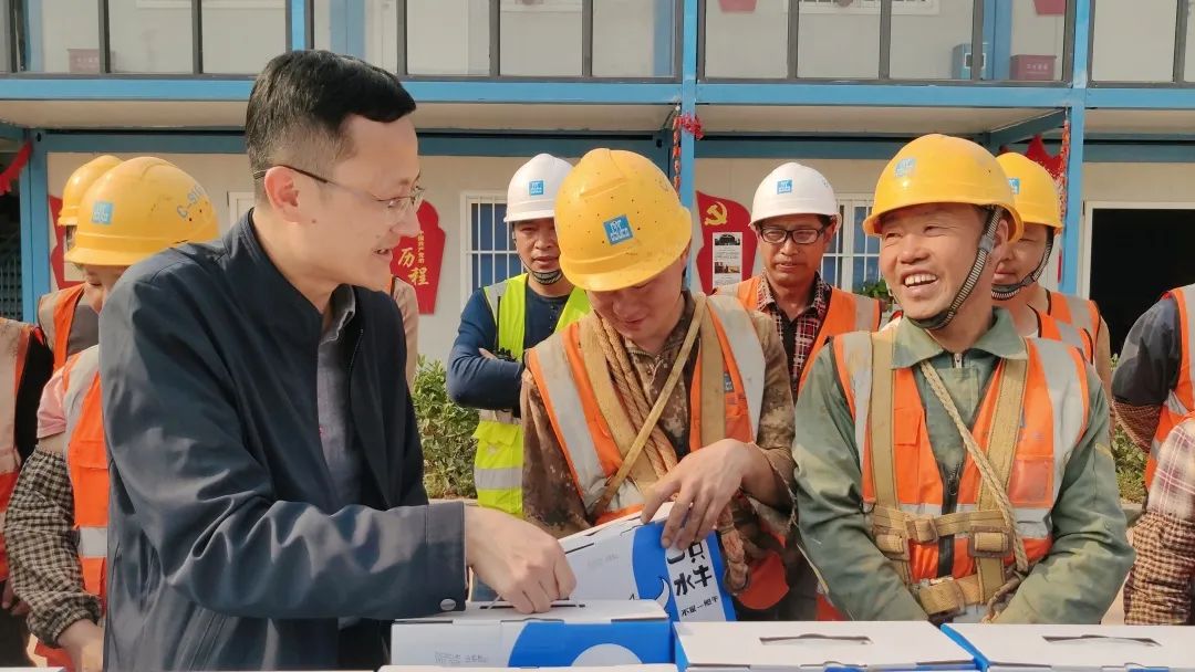 會議流程中,項目總工蔣卓爾宣讀了勞動競賽方案,以項目生產(chǎn)經(jīng)理戴喜盈為代表的青年員工進(jìn)行集體宣誓,與會領(lǐng)導(dǎo)為項目黨支部、青年突擊隊授攻堅牌,并慰問了項目管理人員、農(nóng)民工。