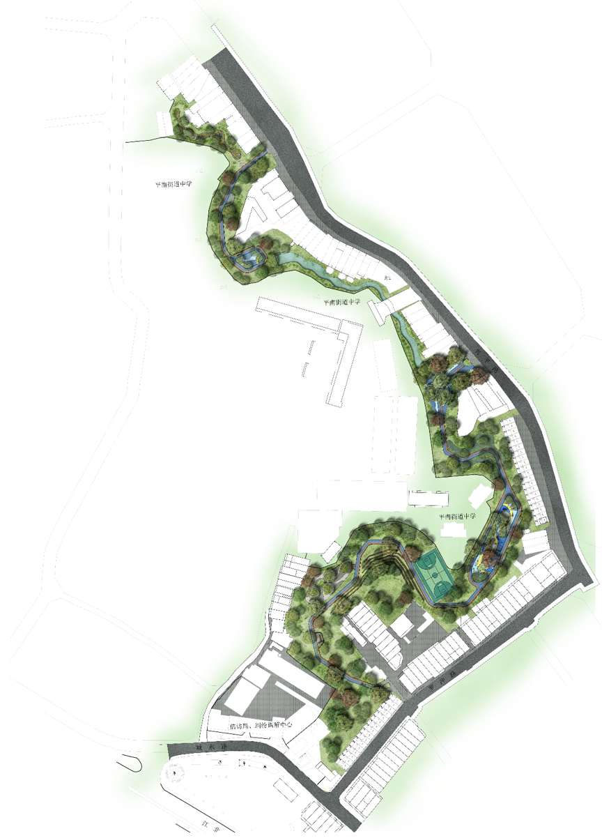 設(shè)計目標:根據(jù)《平南縣城總體規(guī)劃(2009-2030)》要求,城市發(fā)展需要妥善處理好山水環(huán)境的關(guān)系,創(chuàng)造城市特色,加強江河、湖塘等水體資源的保護,提高人均公共綠地和綠化覆蓋率水平。結(jié)合平南縣的特點,重點改善城區(qū)水系景觀,增加城區(qū)園林綠化面積,改變城區(qū)綠化落后狀況,本次設(shè)計將羅沖溝打造成一座環(huán)境優(yōu)美的帶狀休閑公園。