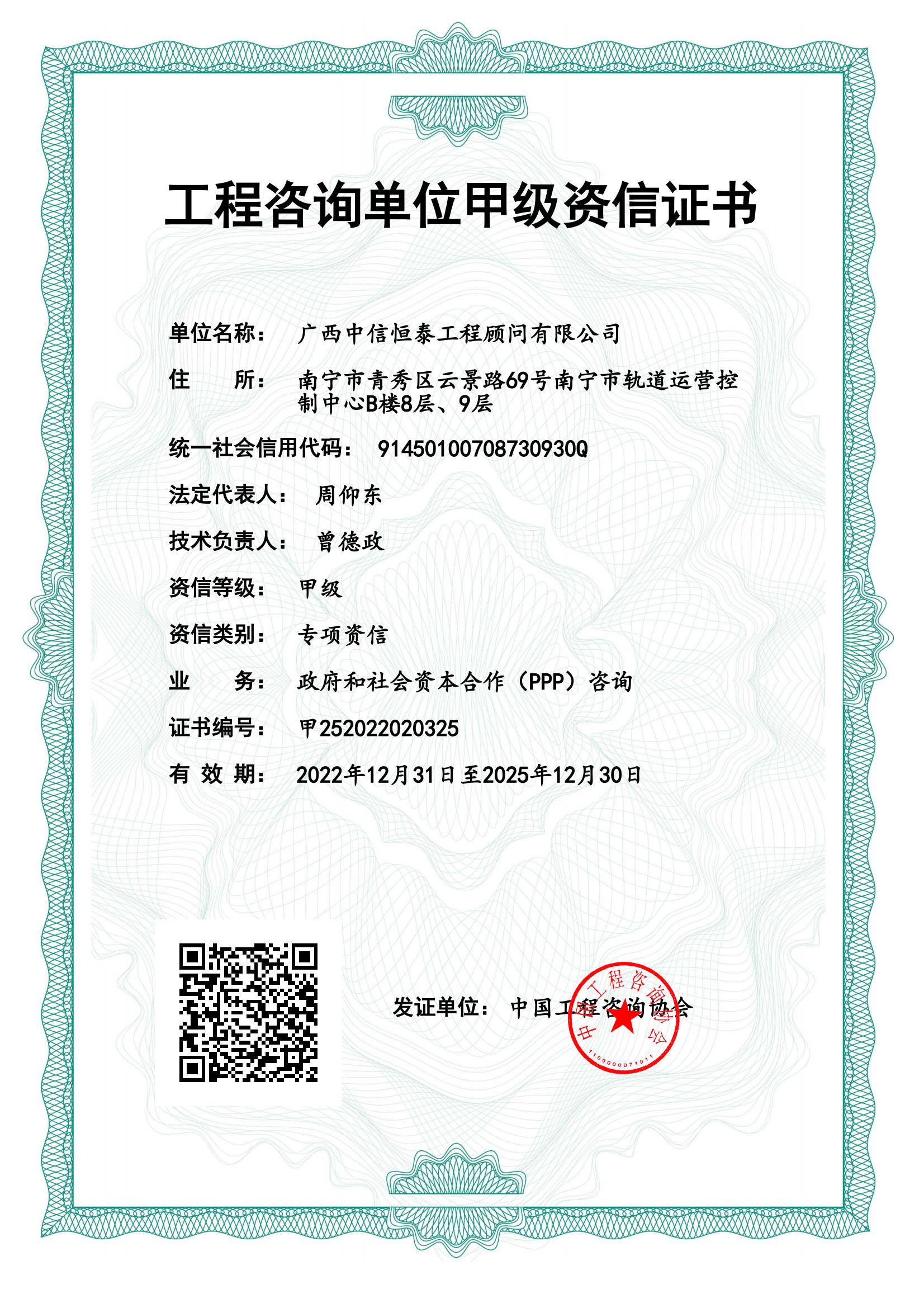 工程咨詢單位甲級資信(政府和社會資本合作PPP咨詢)