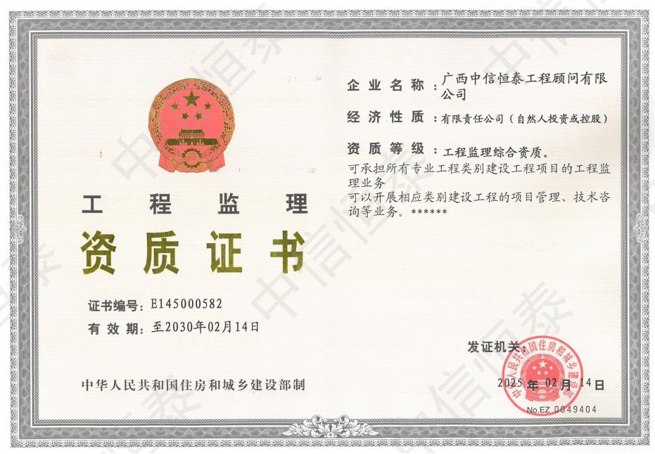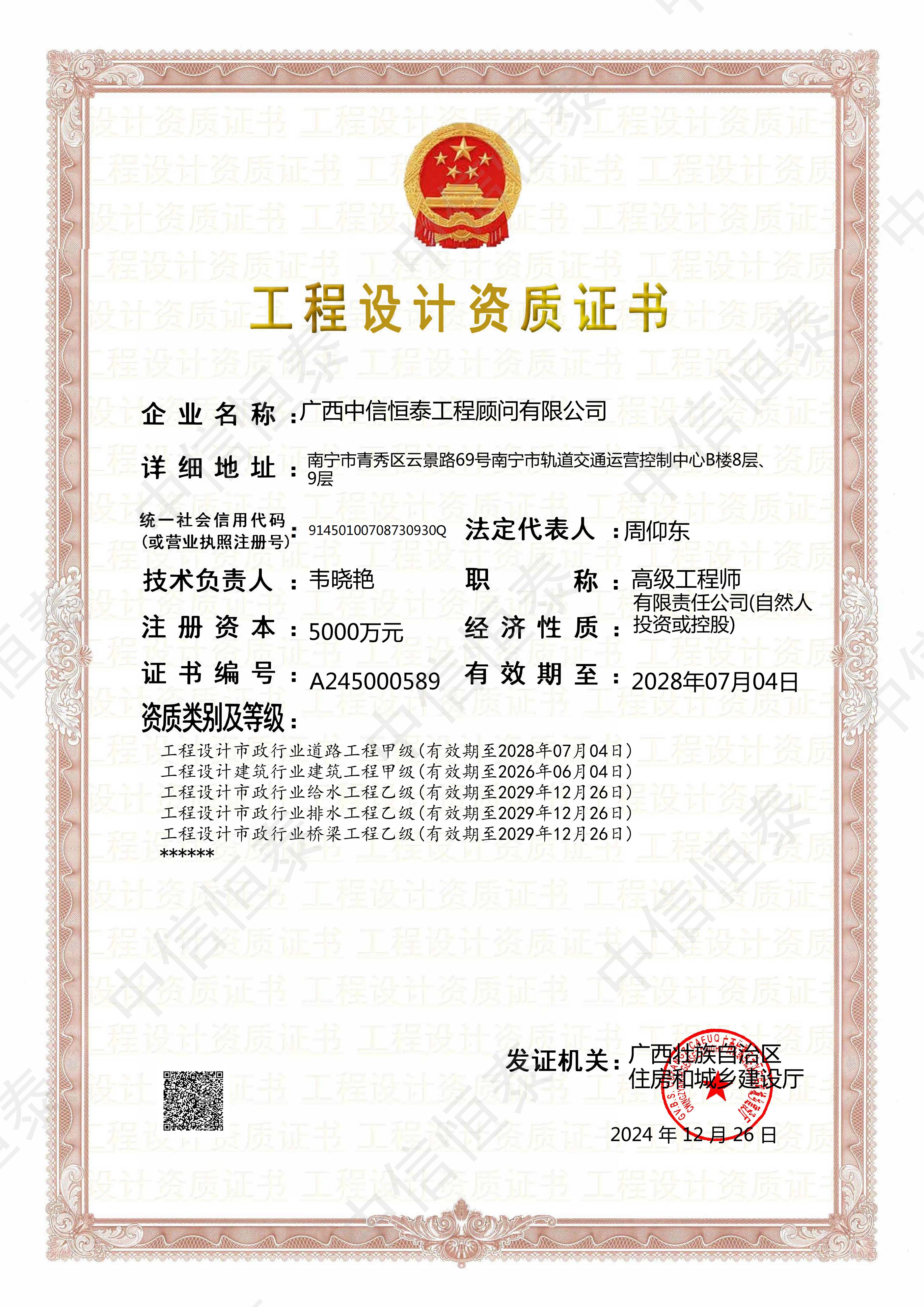 廣西中信恒泰工程顧問有限公司工程設(shè)計(jì)企業(yè)資質(zhì)證書