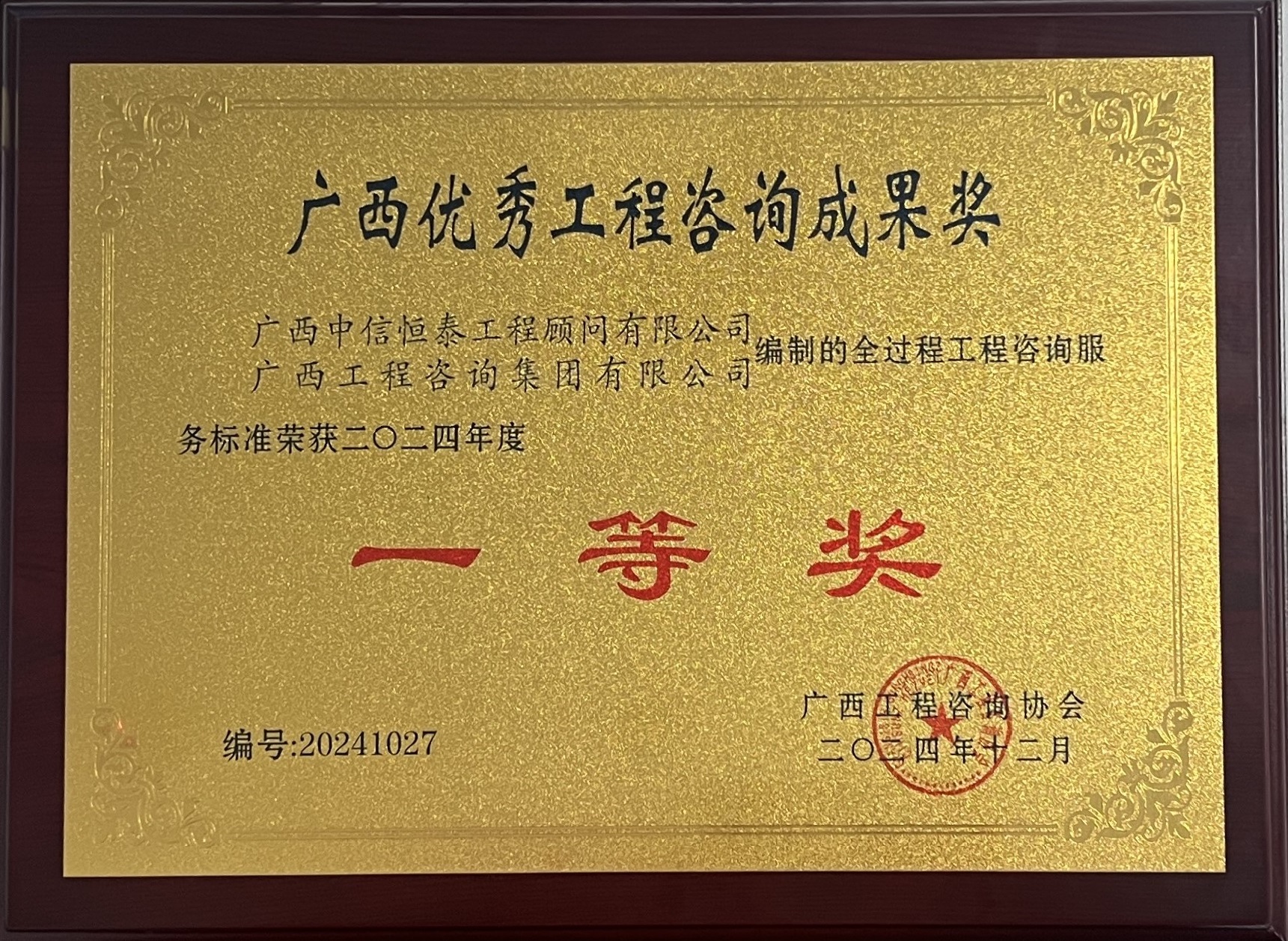 廣西優(yōu)秀工程咨詢成果獎(jiǎng)--《全過程工程咨詢服務(wù)標(biāo)準(zhǔn)》榮獲2024年度一等獎(jiǎng)