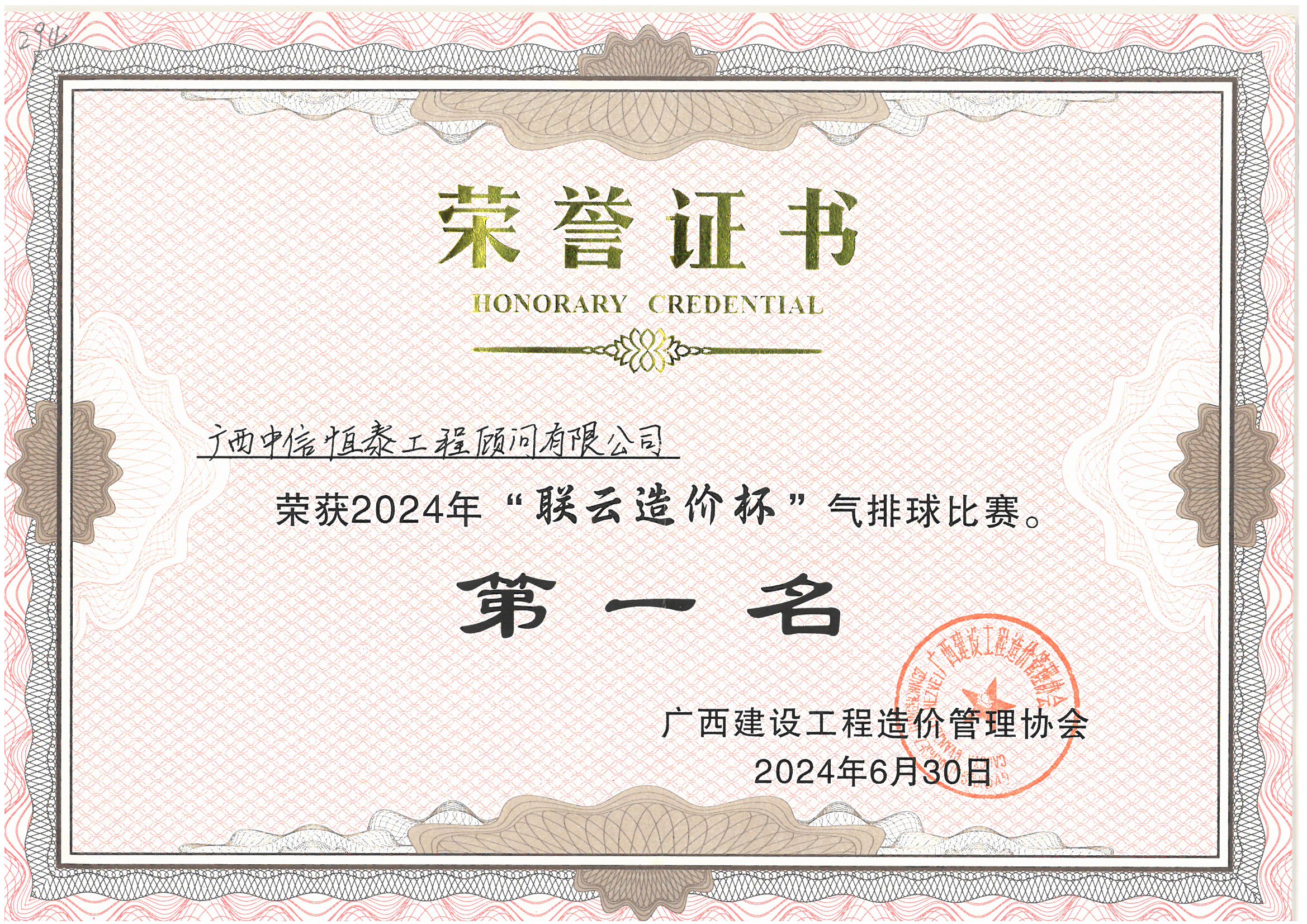 2024年“聯(lián)云造價杯”氣排球比賽第一名