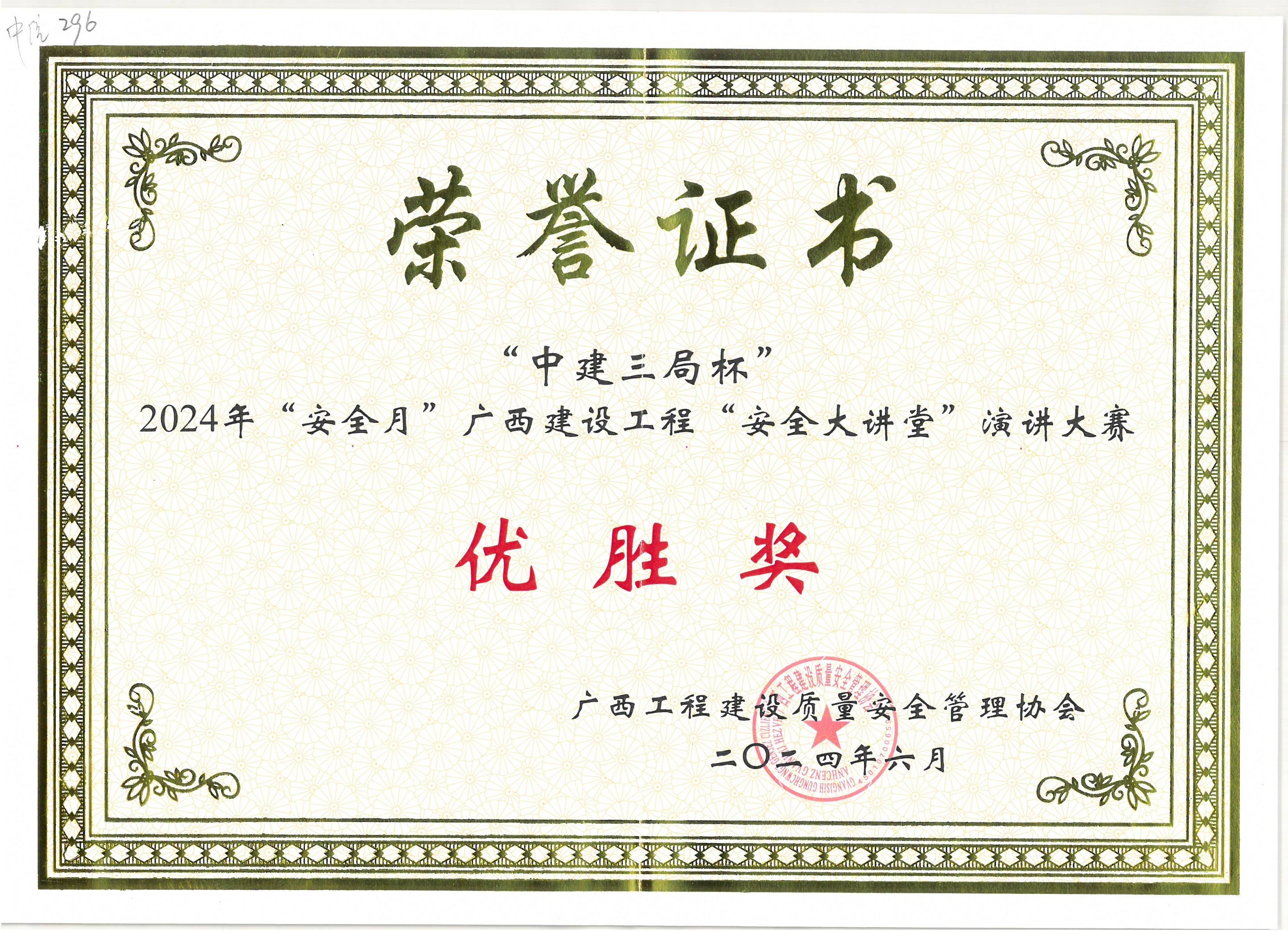“中建三局杯”2024年“安全月”廣西建設(shè)工程“安全大講堂”演講大賽-優(yōu)勝獎