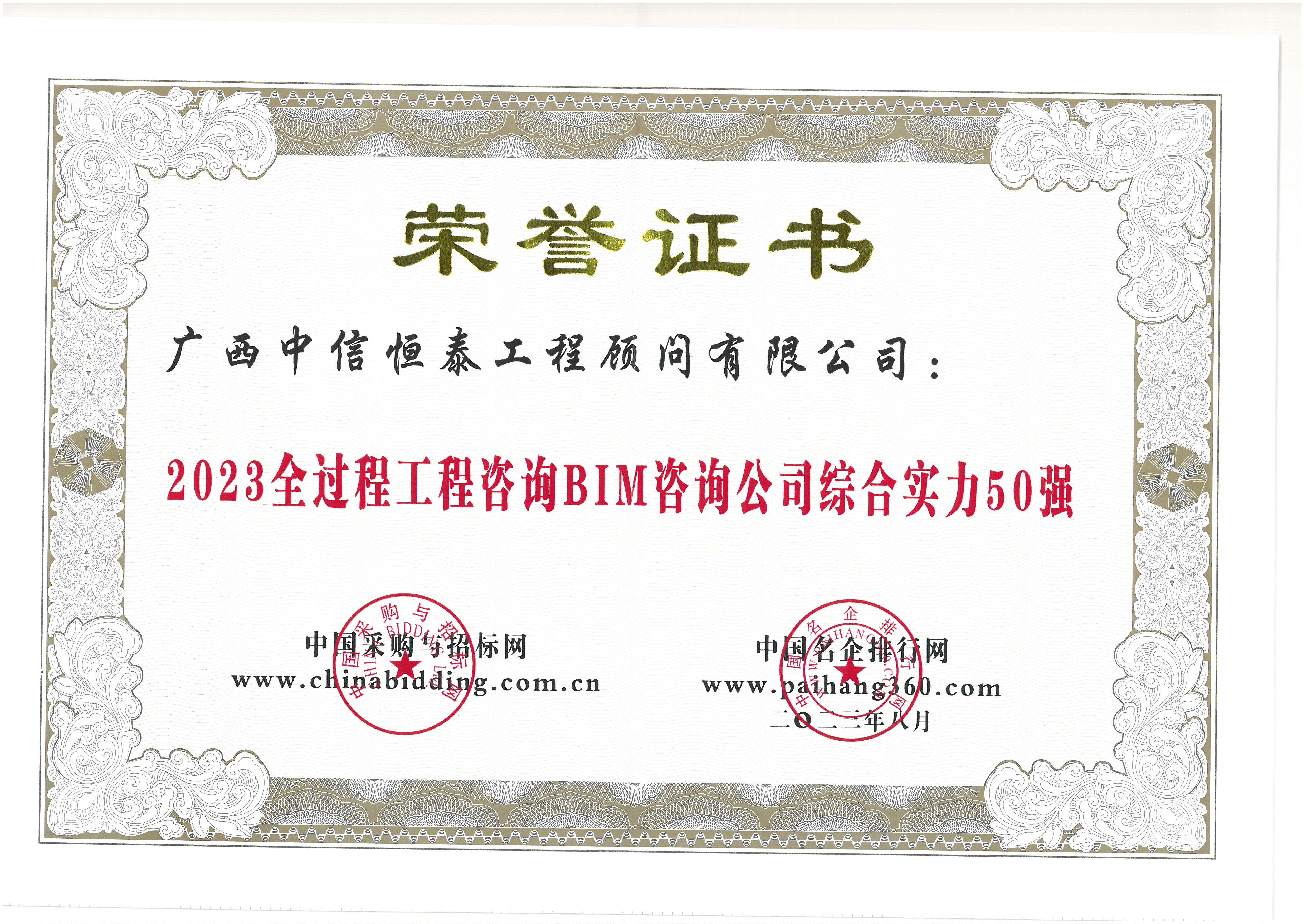 2023全過程工程咨詢BIM咨詢公司綜合實力50強