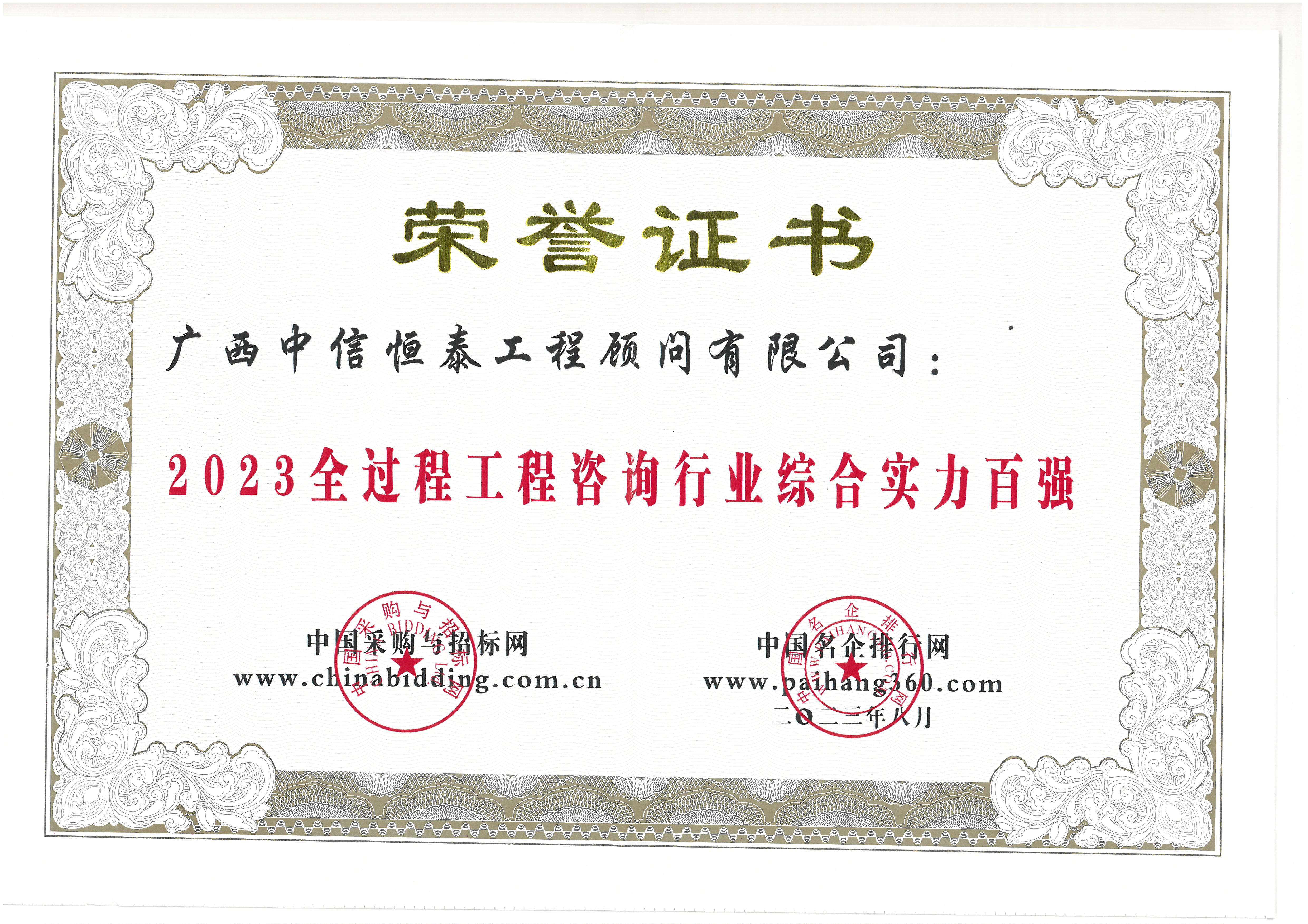 2023全過程工程咨詢行業(yè)綜合實力百強