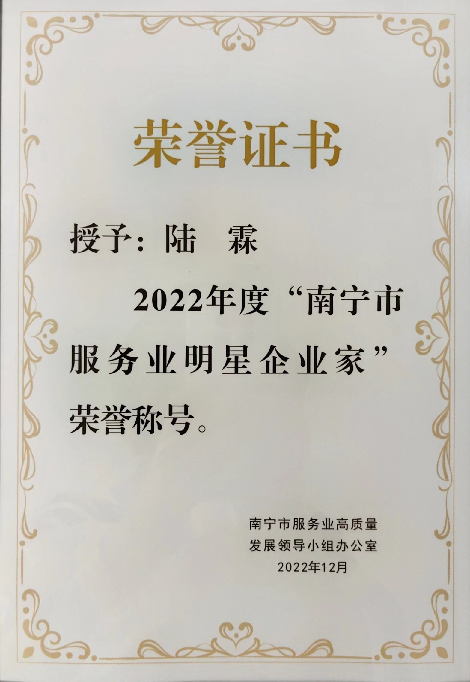 南寧市服務業(yè)明星企業(yè)家-陸霖