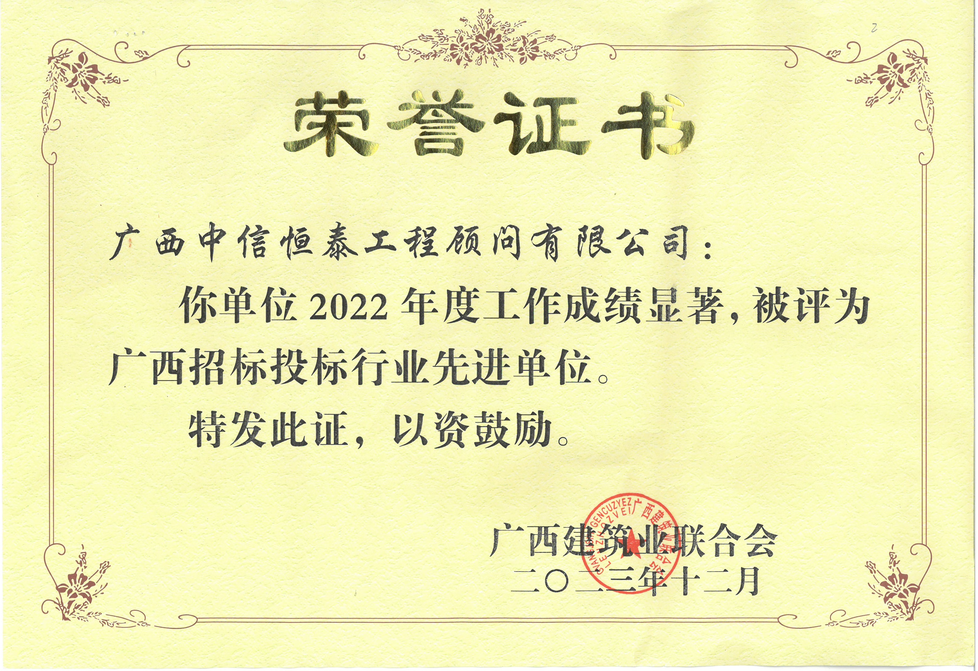 2022年度廣西招標投標行業(yè)先進單位