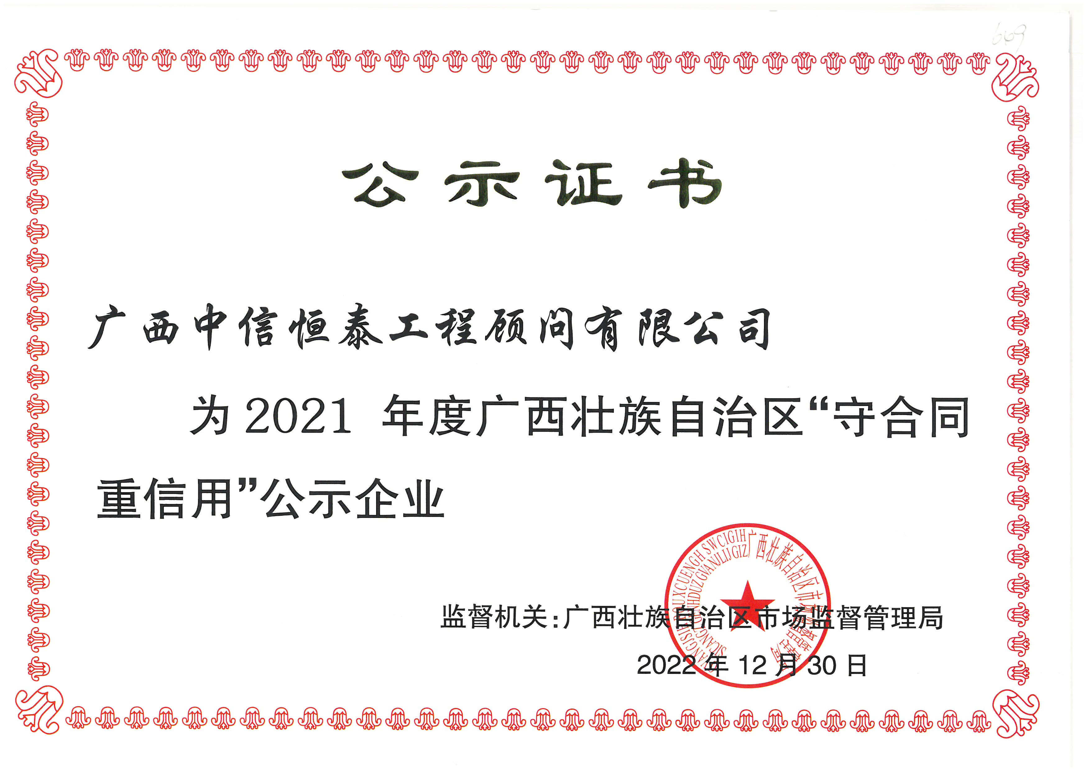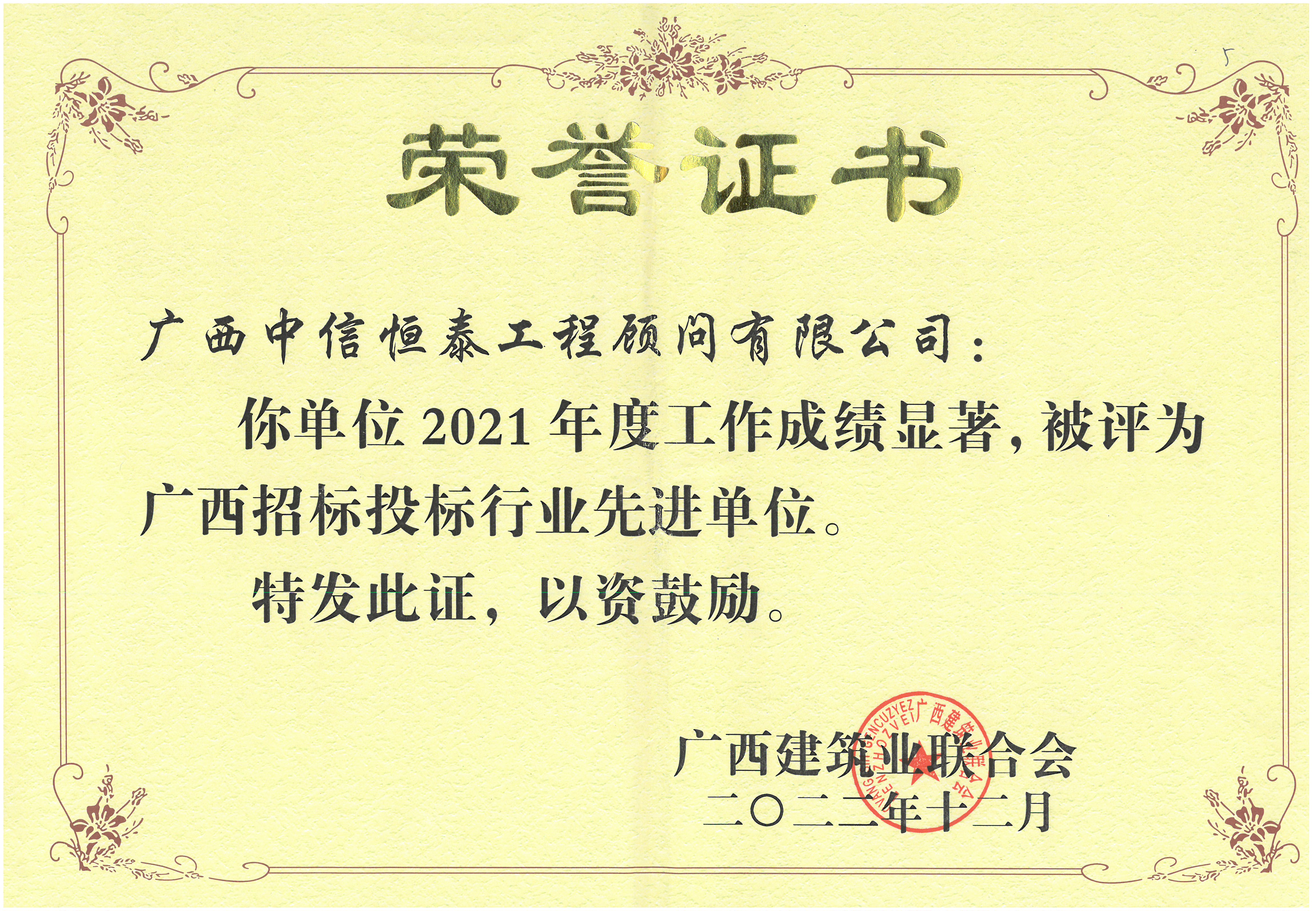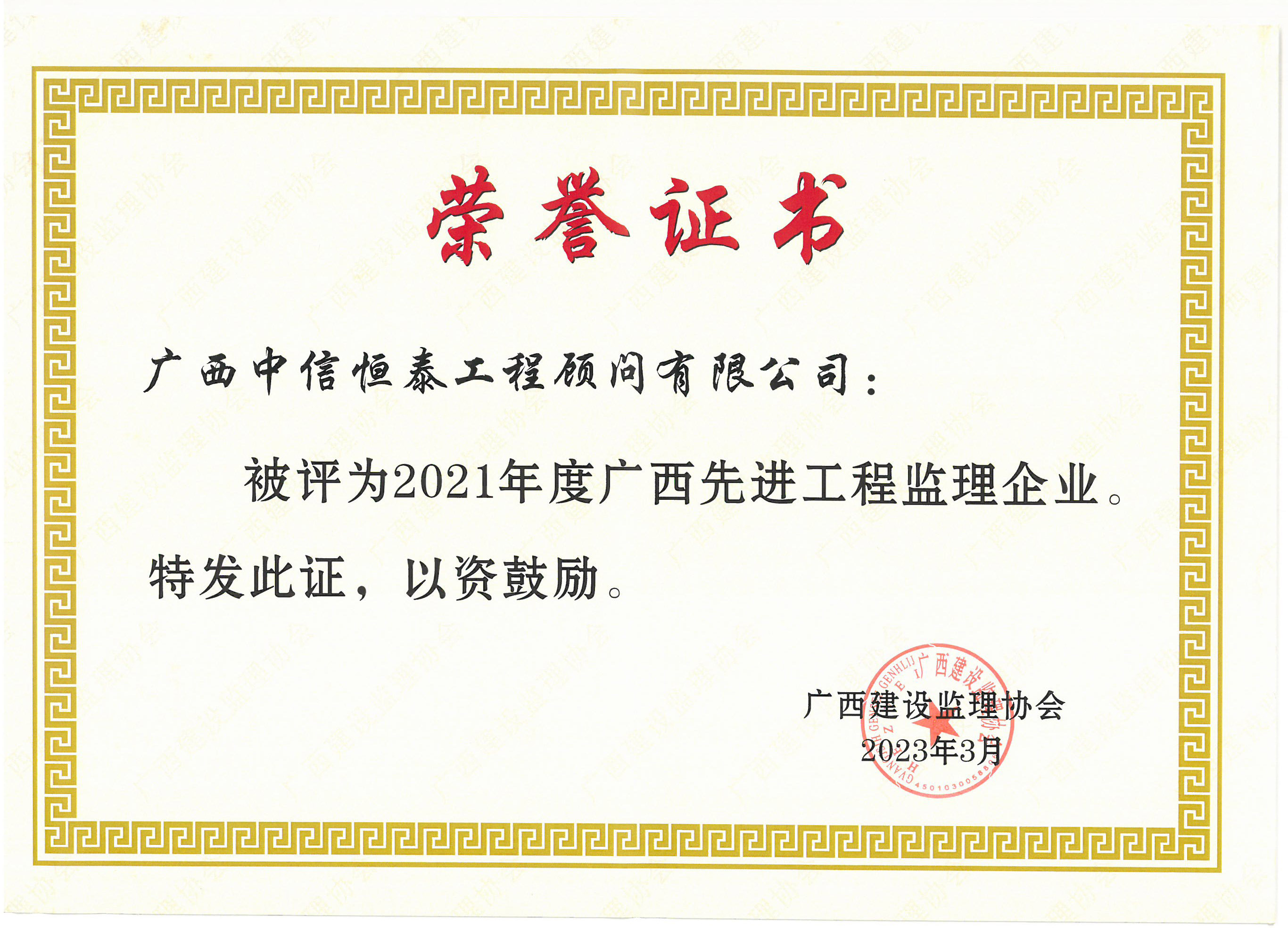 2021年度廣西先進工程監(jiān)理企業(yè)