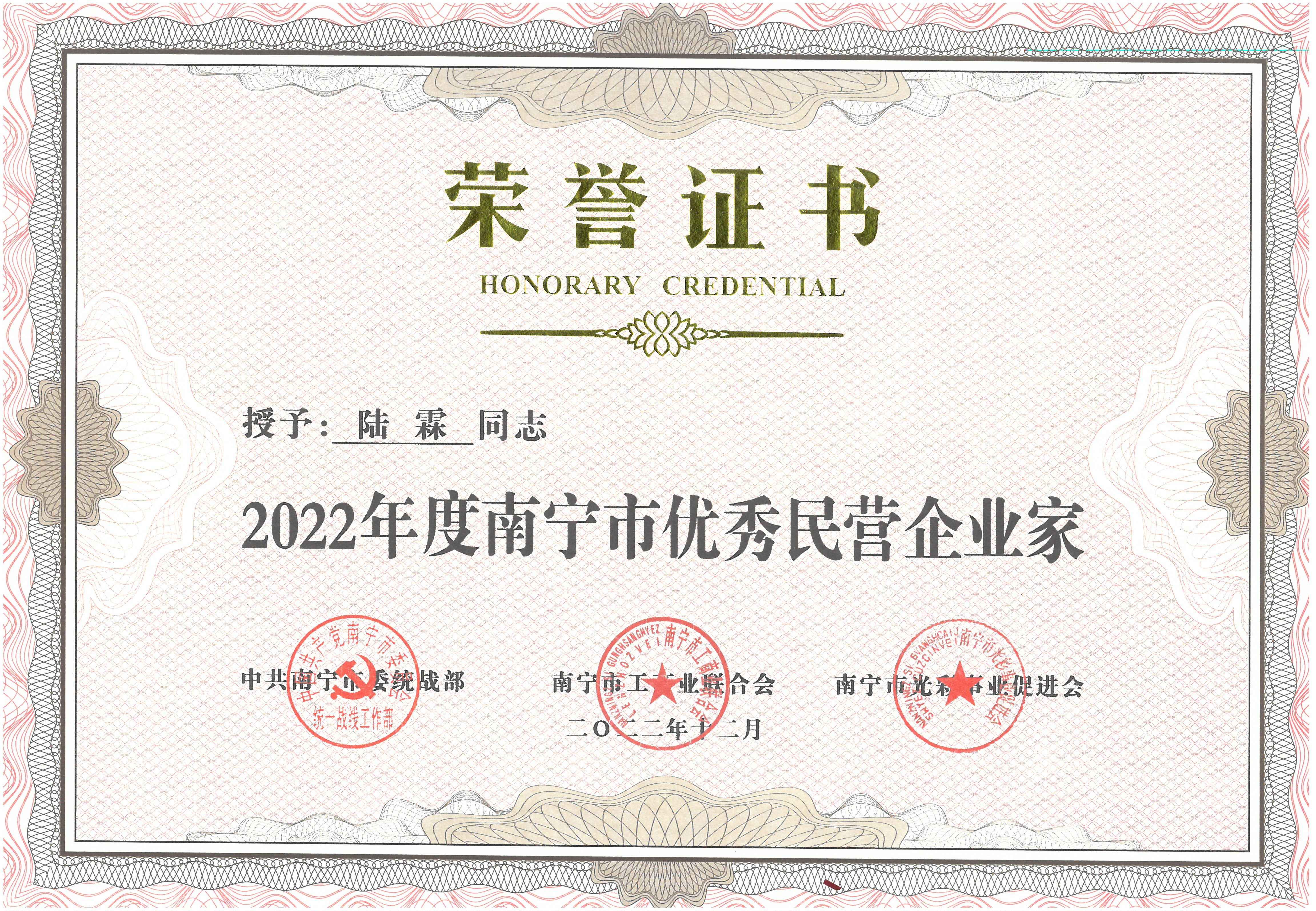 2022年度南寧市百名優(yōu)秀民營企業(yè)家